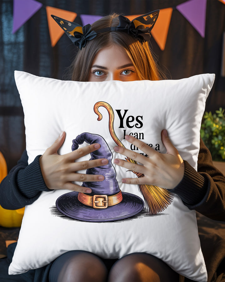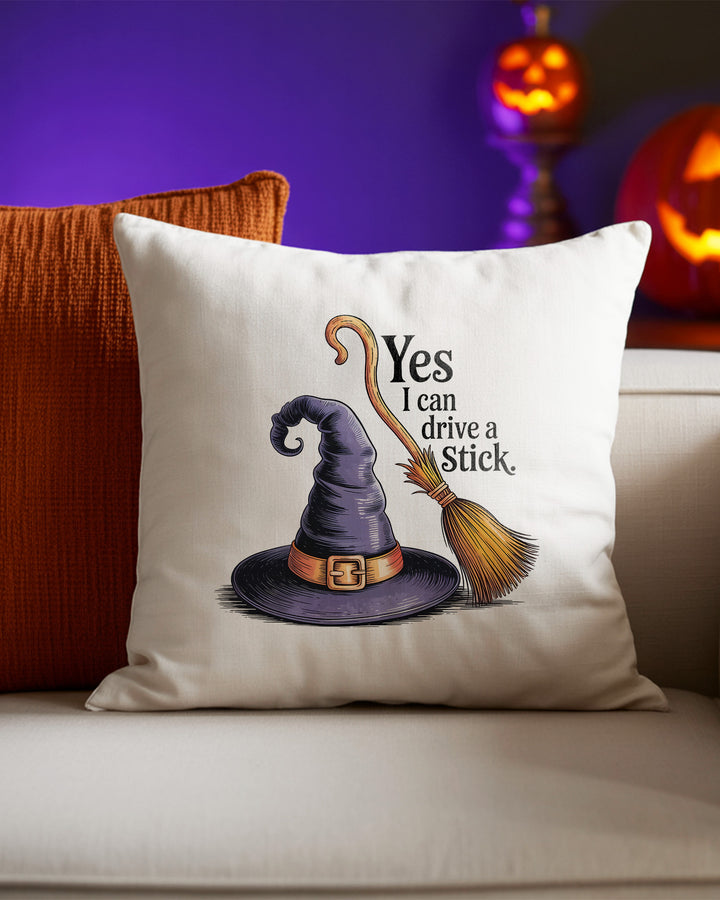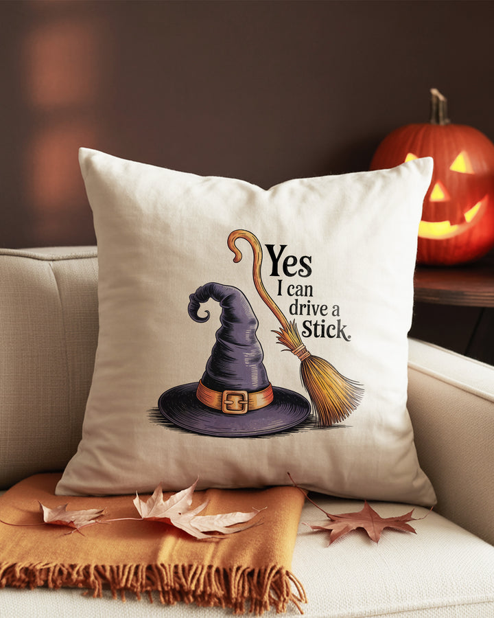 Pillow Cushion Case Witch Hat Broom Yes I Can Drive A Cute Halloween GPL0177