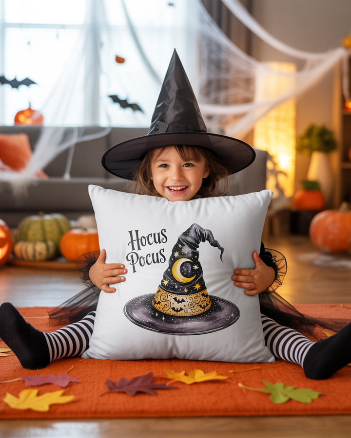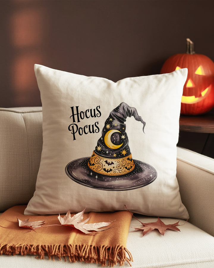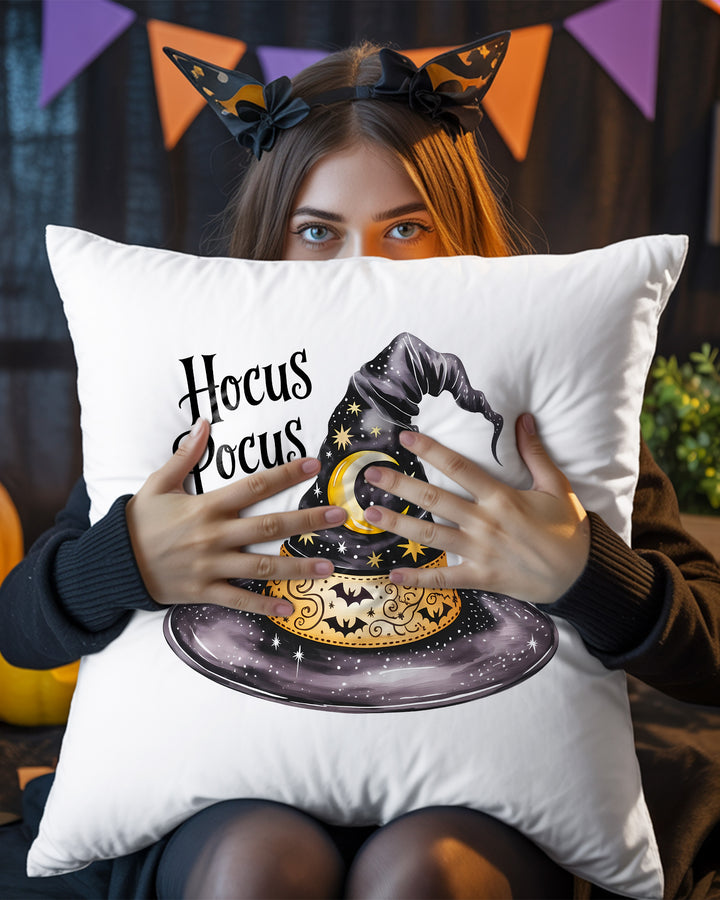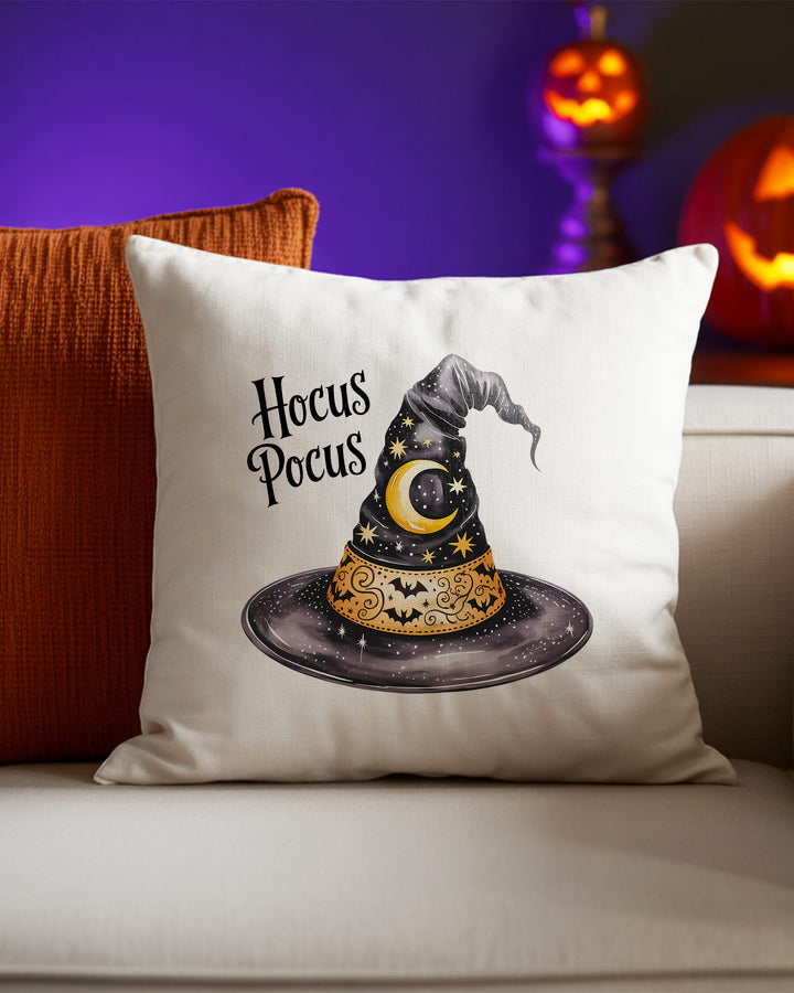 Pillow Cushion Case Witch Hat Moon Stars Bats Cute Halloween GPL0178