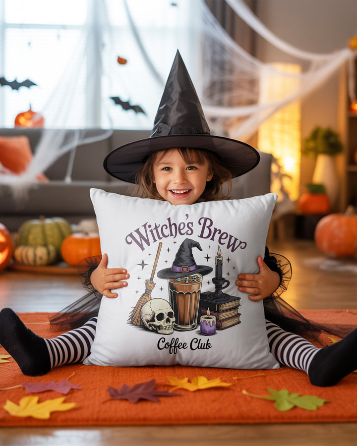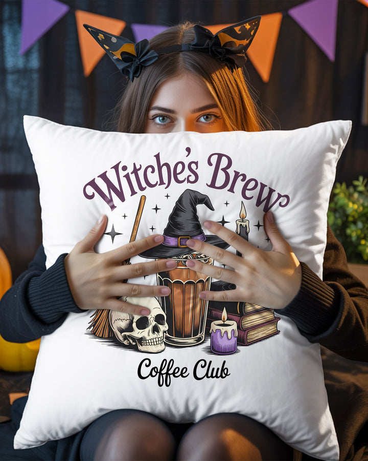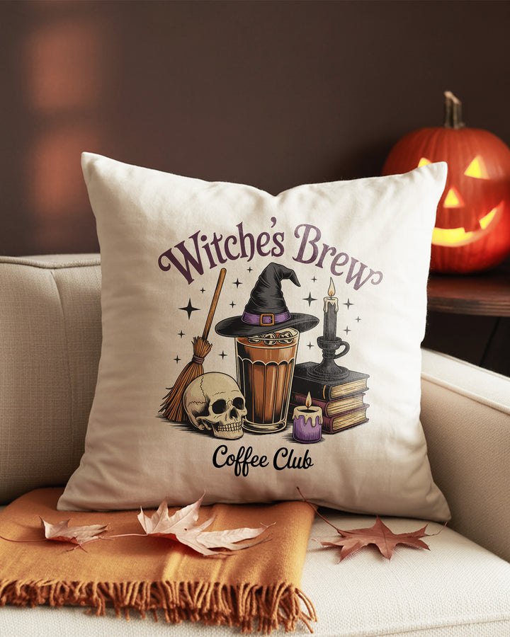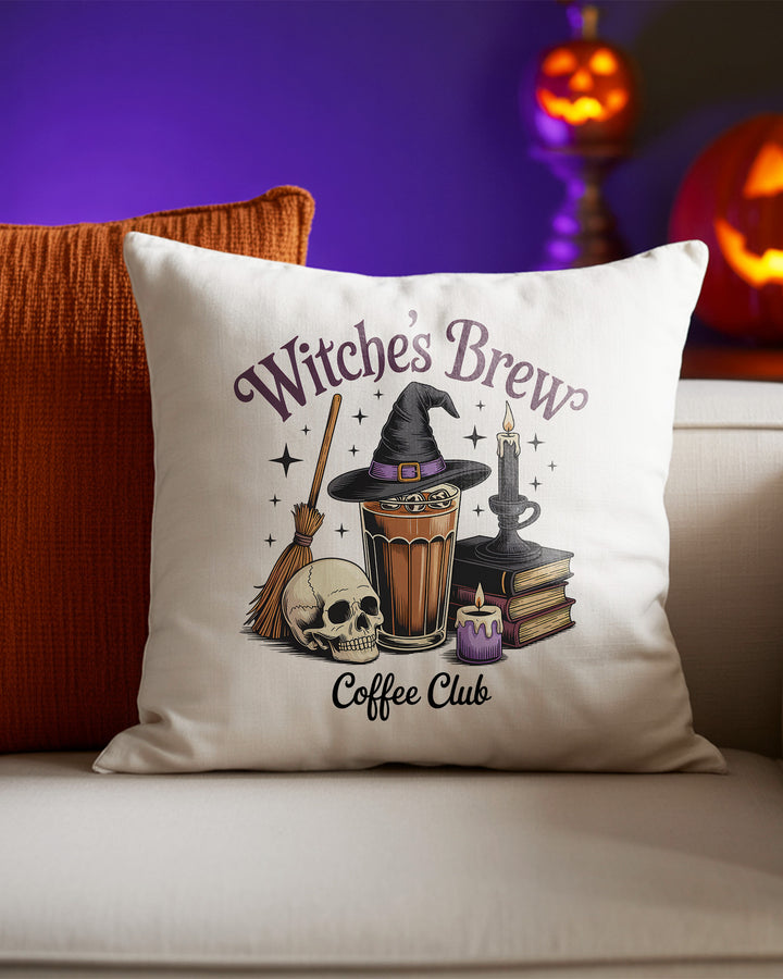 Pillow Cushion Case Witches Brew Coffee Skull Cute Halloween GPL0179