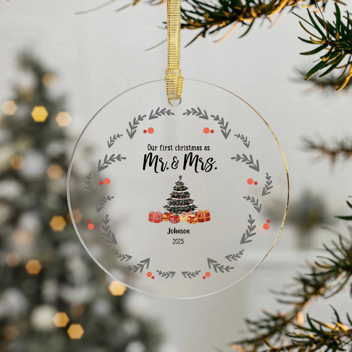 Personalised First Christmas Married Gift Circle Glass Ornament