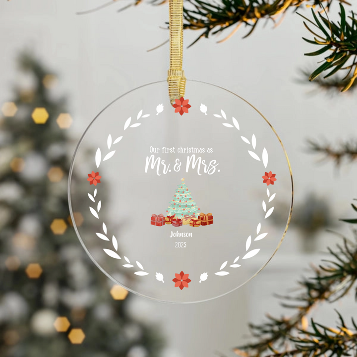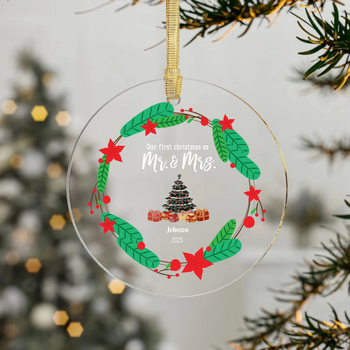 A beautiful keepsake ornament, perfect for celebrating your first Christmas as a married couple.