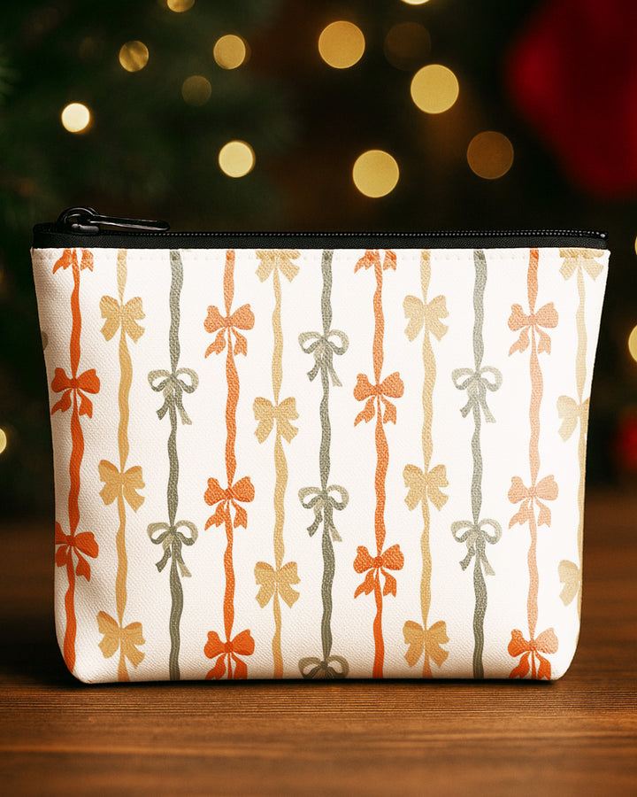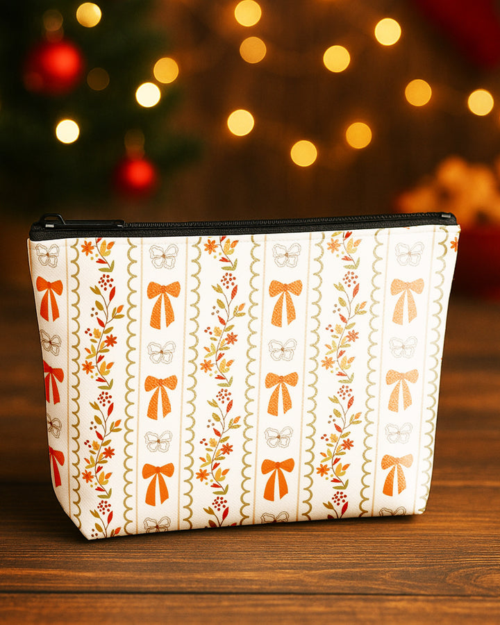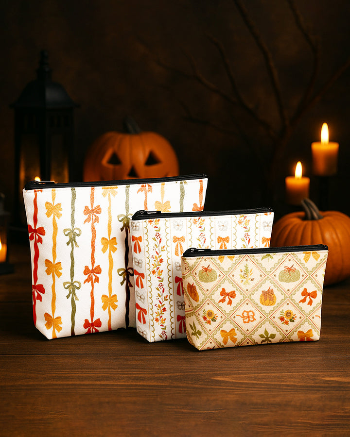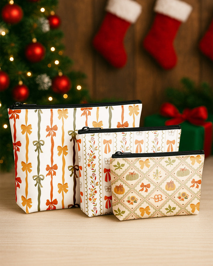 Set of 3 - Essential Zipper Pouch for Makeup Bag Bow Pumpkin Pattern - Xmas Tree Pattern - Xmas Pattern Cute Christmas GPO0167
