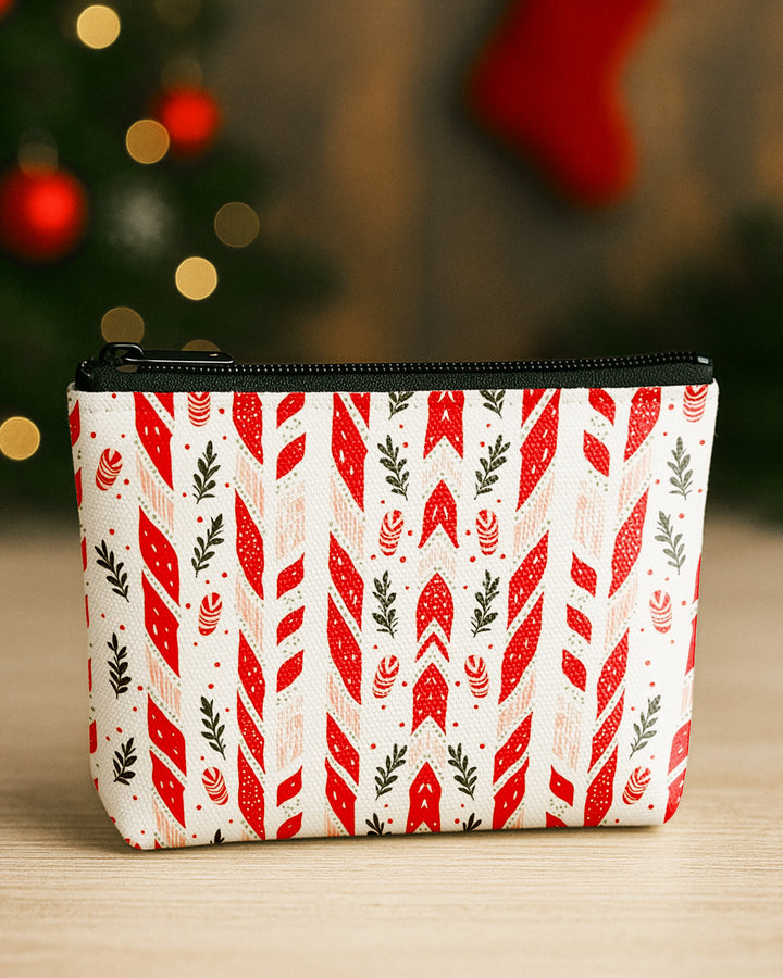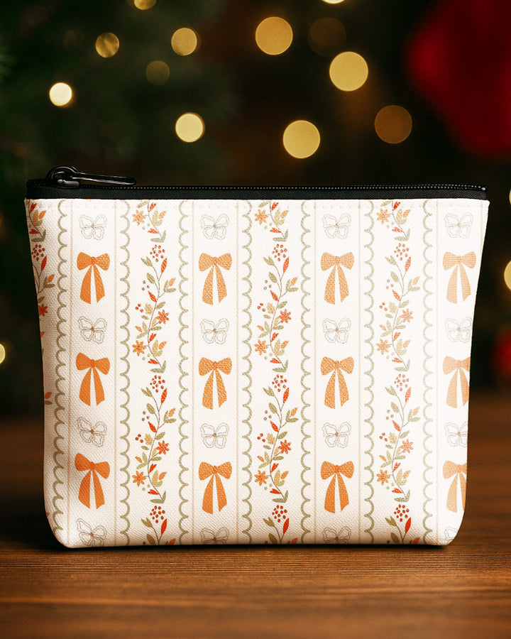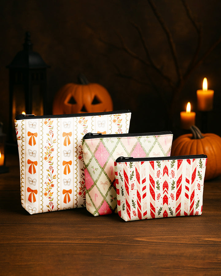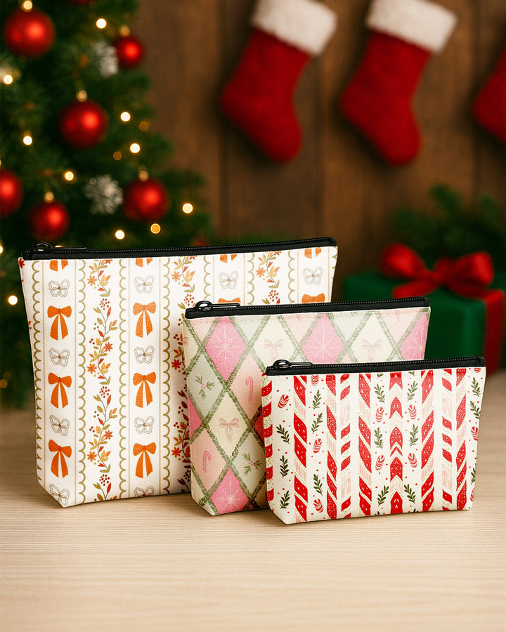 Set of 3 - Essential Zipper Pouch for Makeup Bag Candy Bow Pattern - Bow Pattern - Red Xmas Pattern Cute Christmas GPO0169