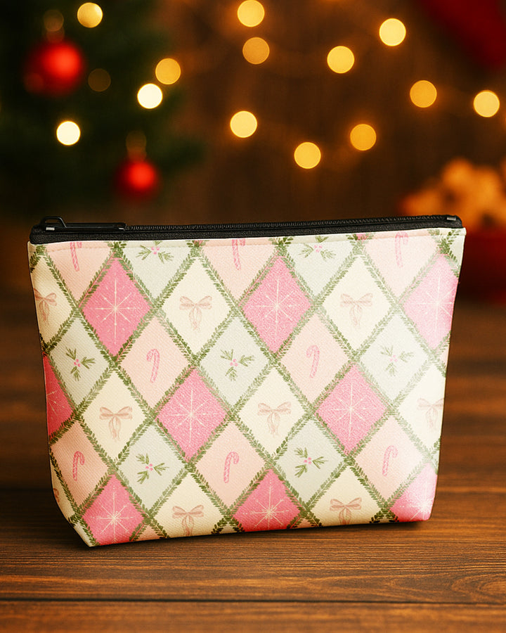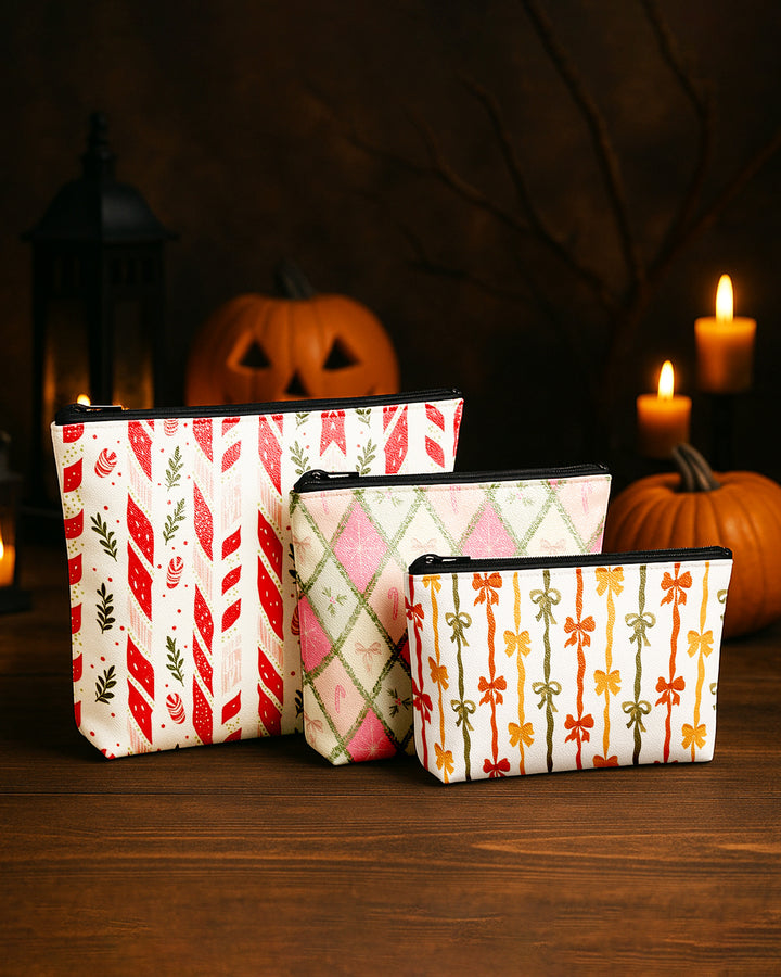 Set of 3 - Essential Zipper Pouch for Makeup Bag Candy Bow Pattern - Red Xmas Pattern - Colorful Bow Pattern Cute Christmas GPO0170