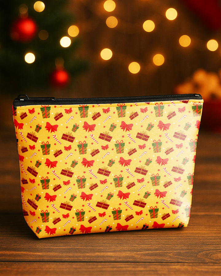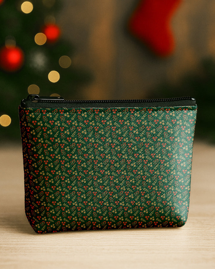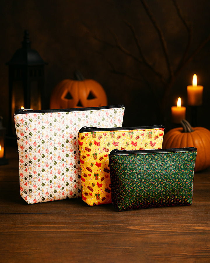 Set of 3 - Essential Zipper Pouch for Makeup Bag Christmas Candy Canes Pattern - Christmas Ornaments Pattern - Small Flowers Green Background Cute Christmas GPO0183