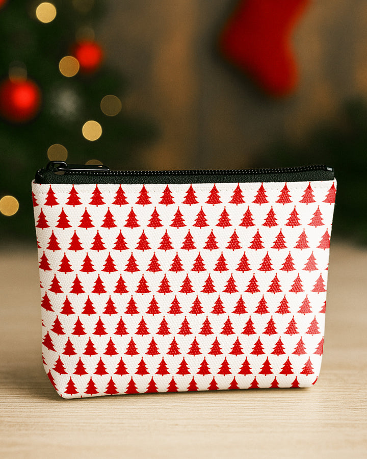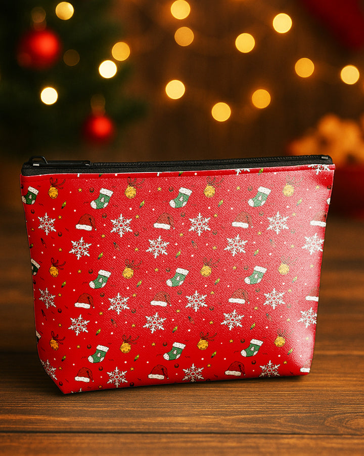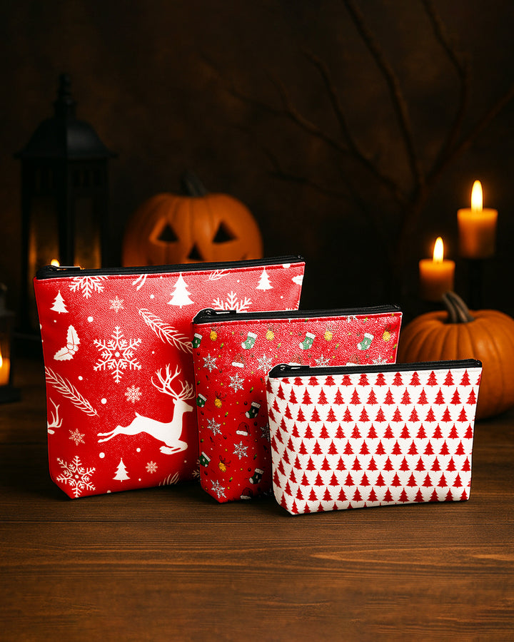 Set of 3 - Essential Zipper Pouch for Makeup Bag Christmas Stocking Hat Pattern - Red Xmas - Xmas Tree Pattern Cute Christmas GPO0186