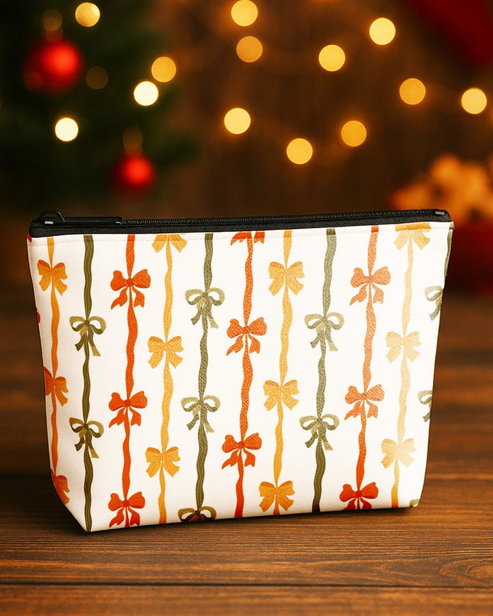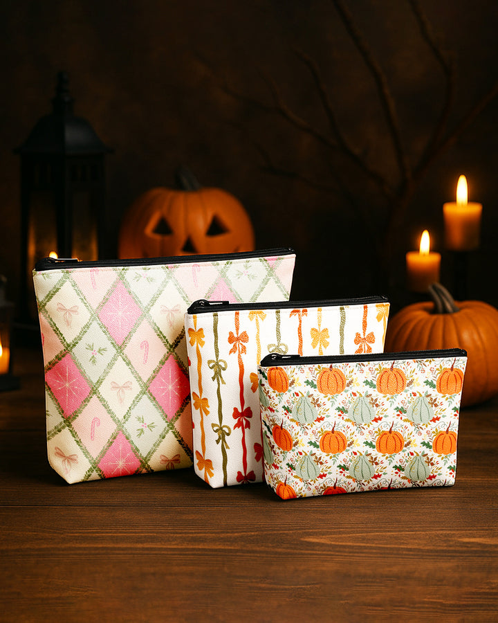 Set of 3 - Essential Zipper Pouch for Makeup Bag Colorful Bow Pattern - Candy Bow Pattern - Pumpkin Pattern Cute Christmas GPO0172