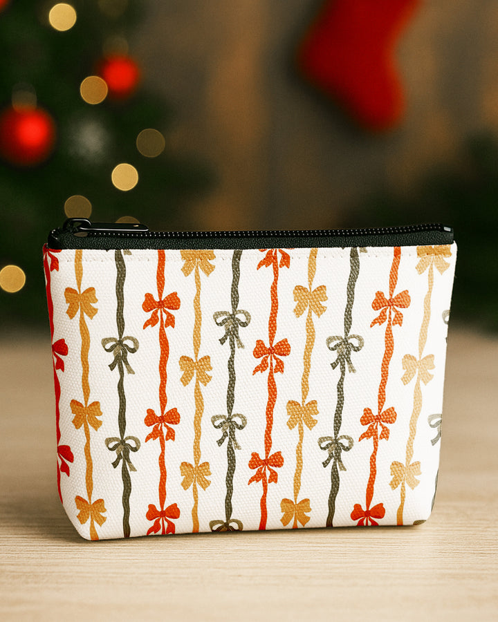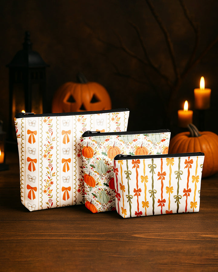 Set of 3 - Essential Zipper Pouch for Makeup Bag Pupmkin Pattern - Bow Pattern - Colorful Bow Pattern Cute Christmas GPO0173