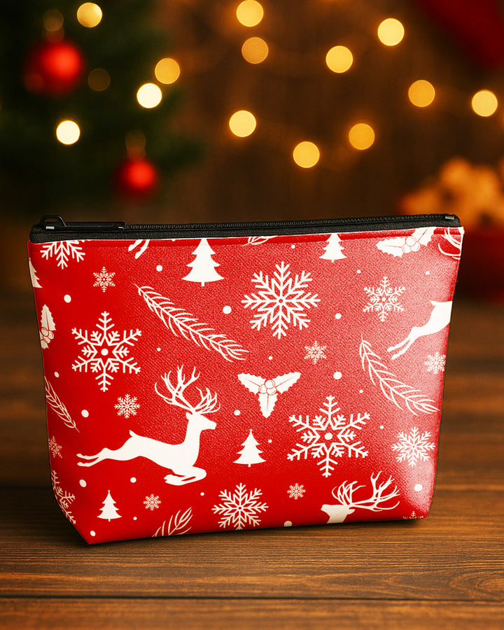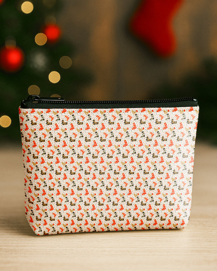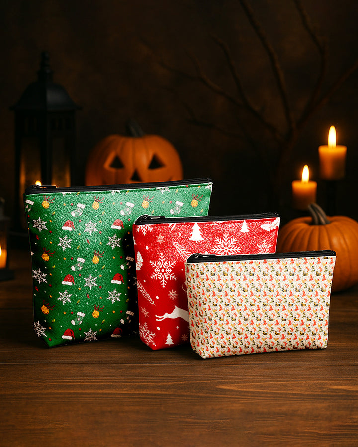 Set of 3 - Essential Zipper Pouch for Makeup Bag Red Xmas - Christmas Pattern Green - Socks Pattern Confetti Cute Christmas GPO0189