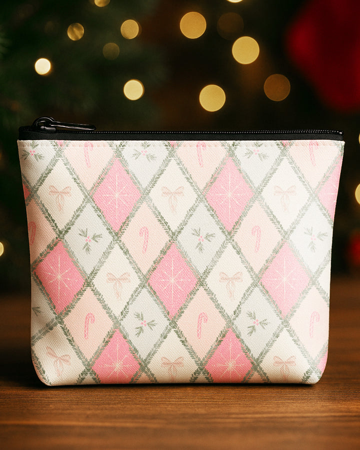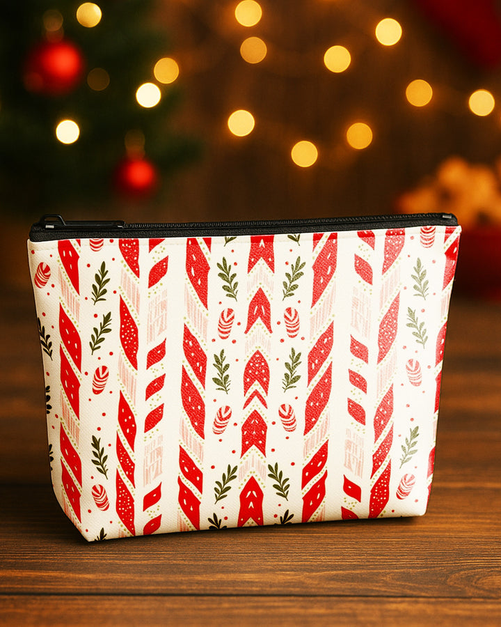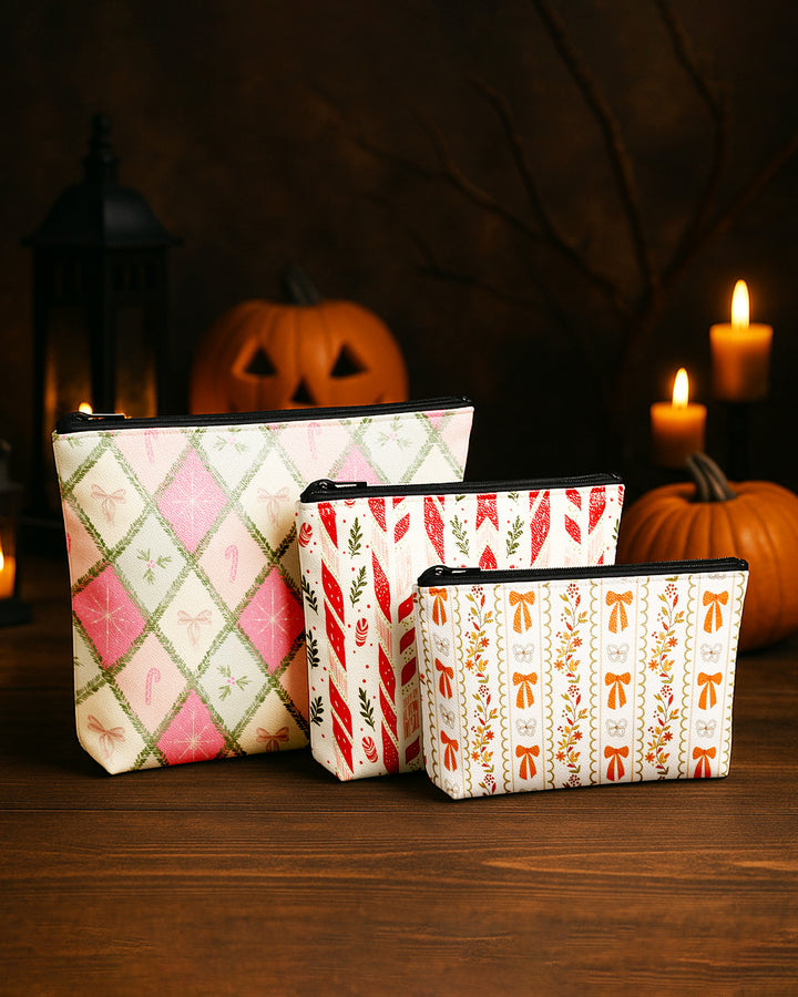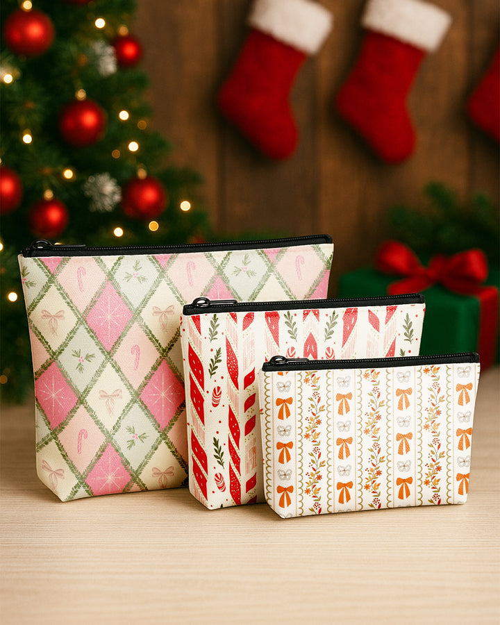 Set of 3 - Essential Zipper Pouch for Makeup Bag Red Xmas Pattern - Candy Bow Pattern - Bow Pattern Cute Christmas GPO0176