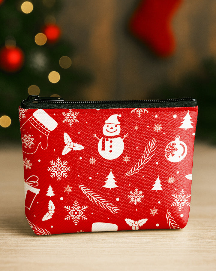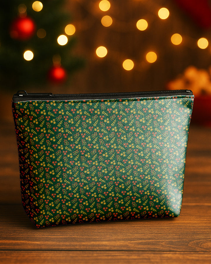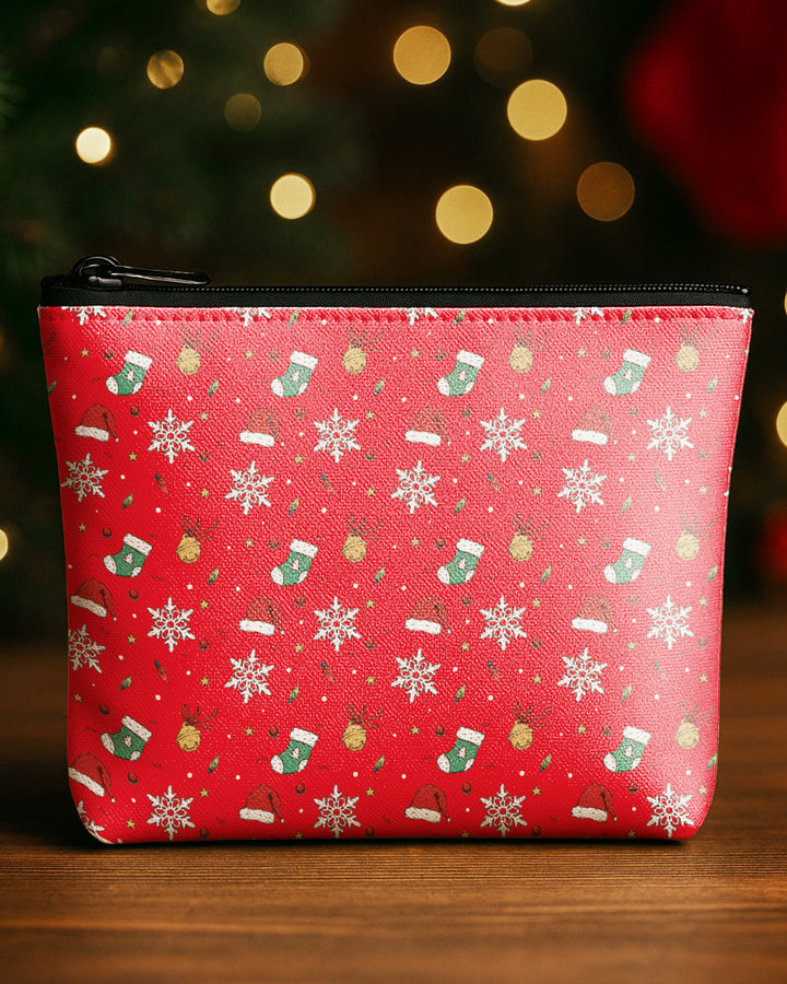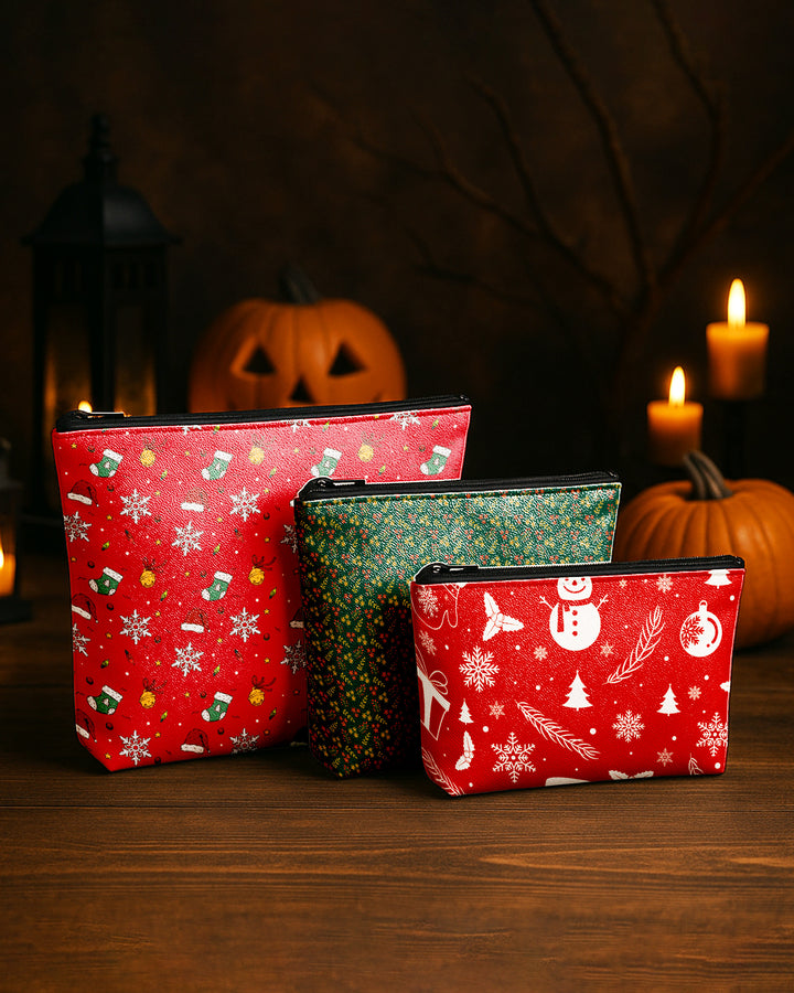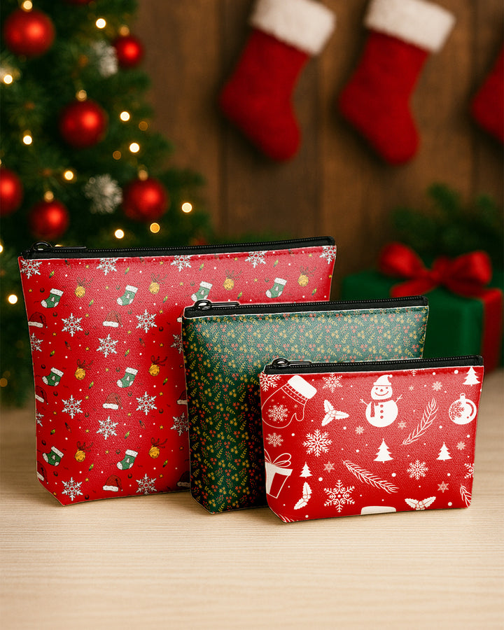 Set of 3 - Essential Zipper Pouch for Makeup Bag Small Flowers Green Background - Christmas Stocking Hat Pattern - Snowman Pattern Cute Christmas GPO0190
