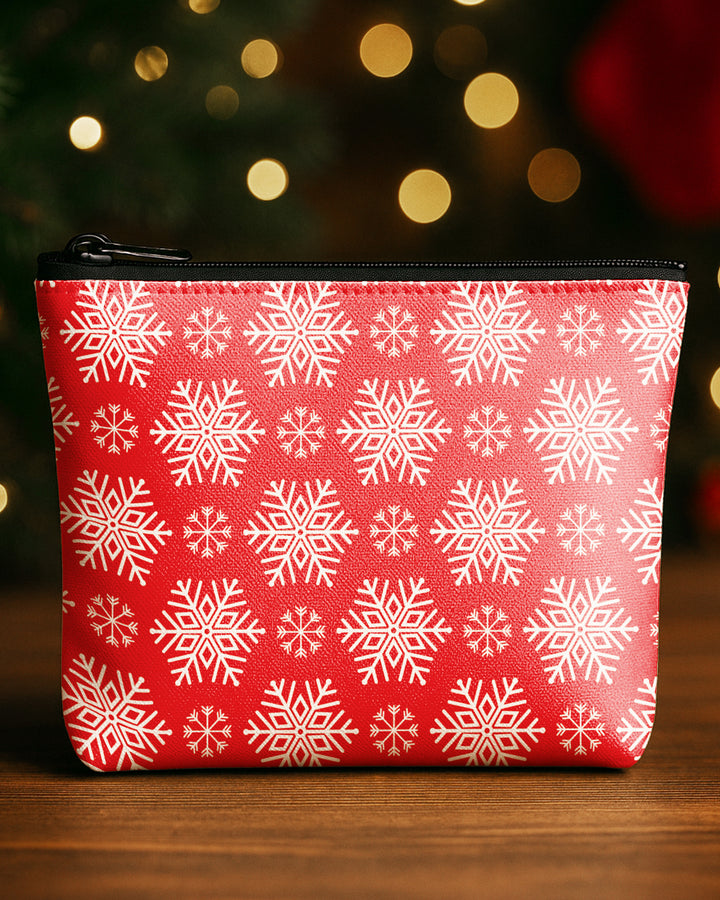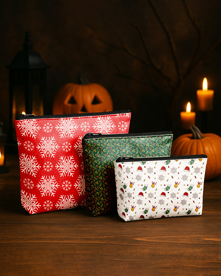 Set of 3 - Essential Zipper Pouch for Makeup Bag Small Flowers Green Background - Snow Flower Pattern - Pattern Stocking Hat Cute Christmas GPO0191