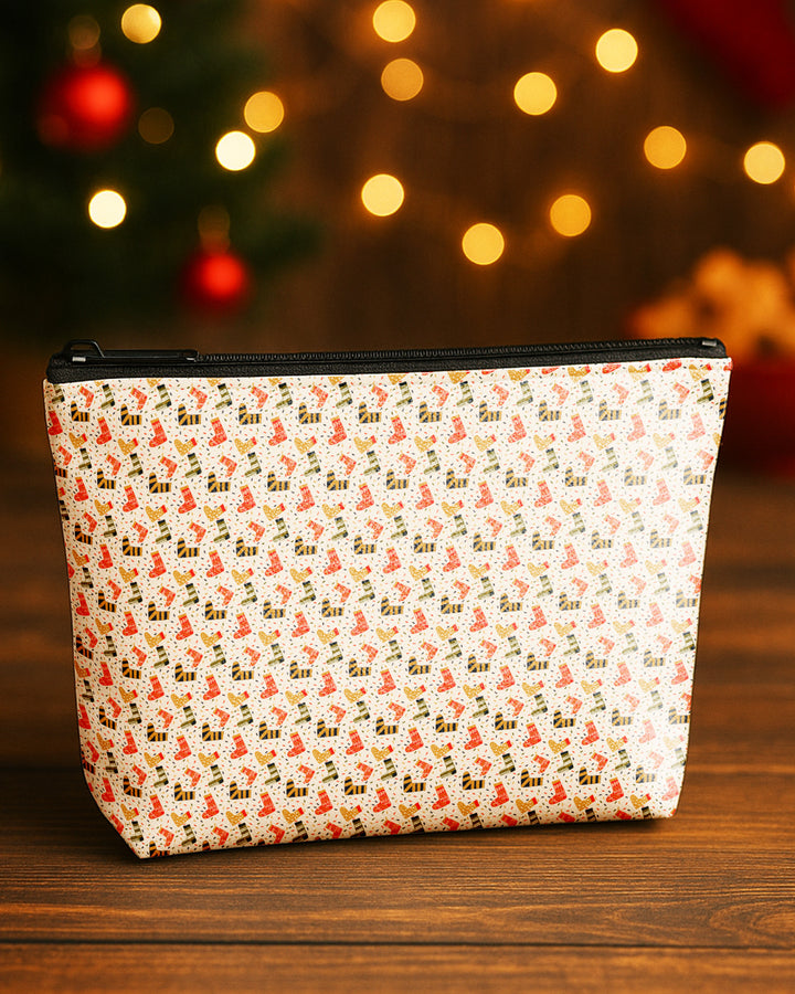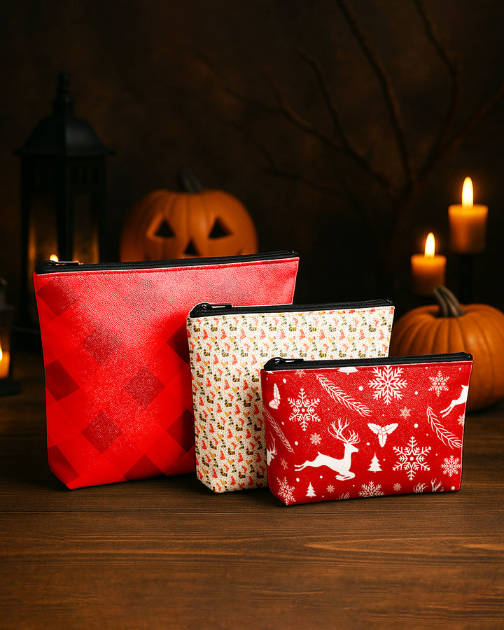 Set of 3 - Essential Zipper Pouch for Makeup Bag Socks Pattern Confetti - Xmas Pattern 4 - Red Xmas Cute Christmas GPO0197