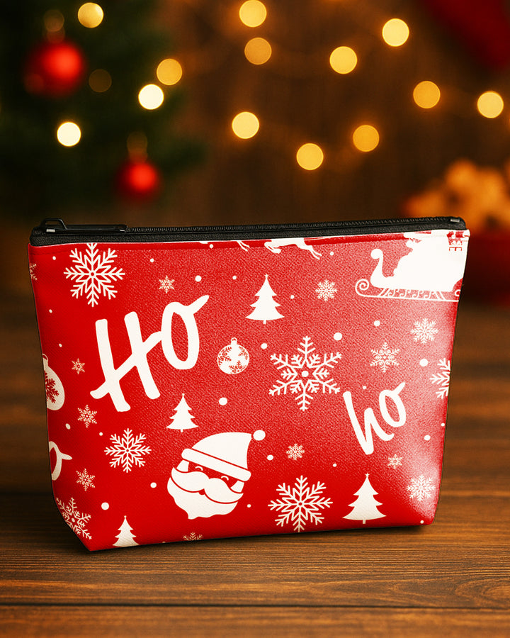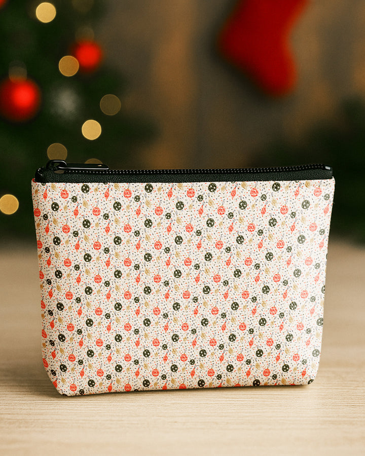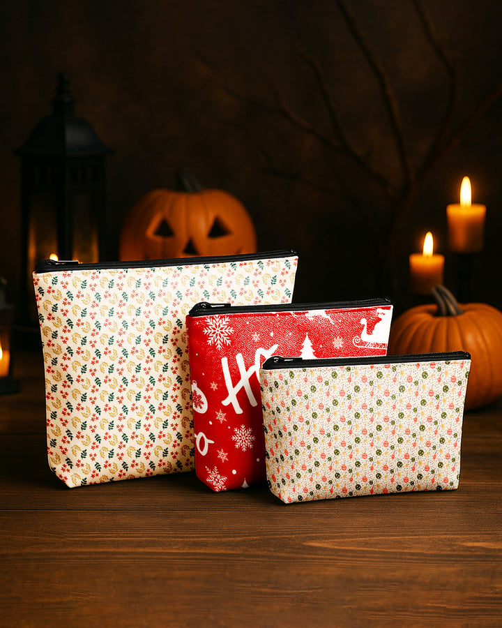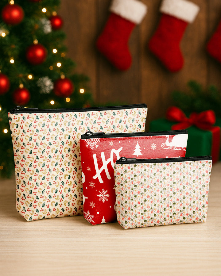 Set of 3 - Essential Zipper Pouch for Makeup Bag Xmas Pattern 3 - Floral Pattern Red Gold Green - Christmas Ornaments Pattern Cute Christmas GPO0199