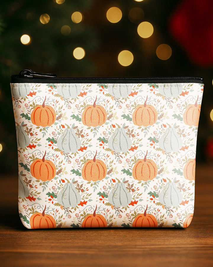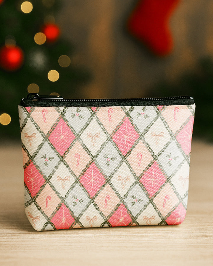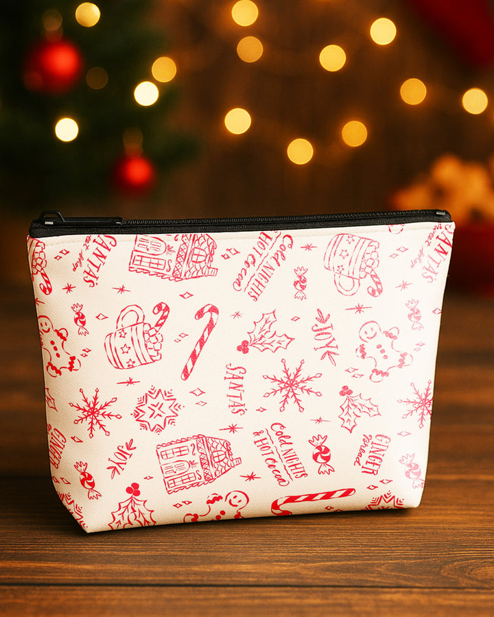 Set of 3 - Essential Zipper Pouch for Makeup Bag Xmas Pattern - Pupmkin Pattern - Candy Bow Pattern Cute Christmas GPO0179