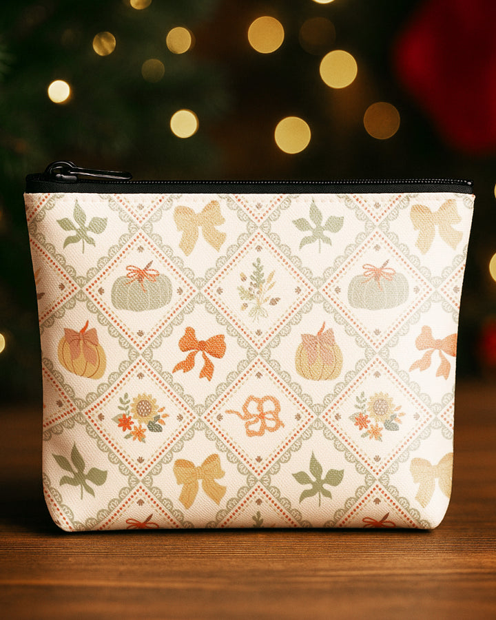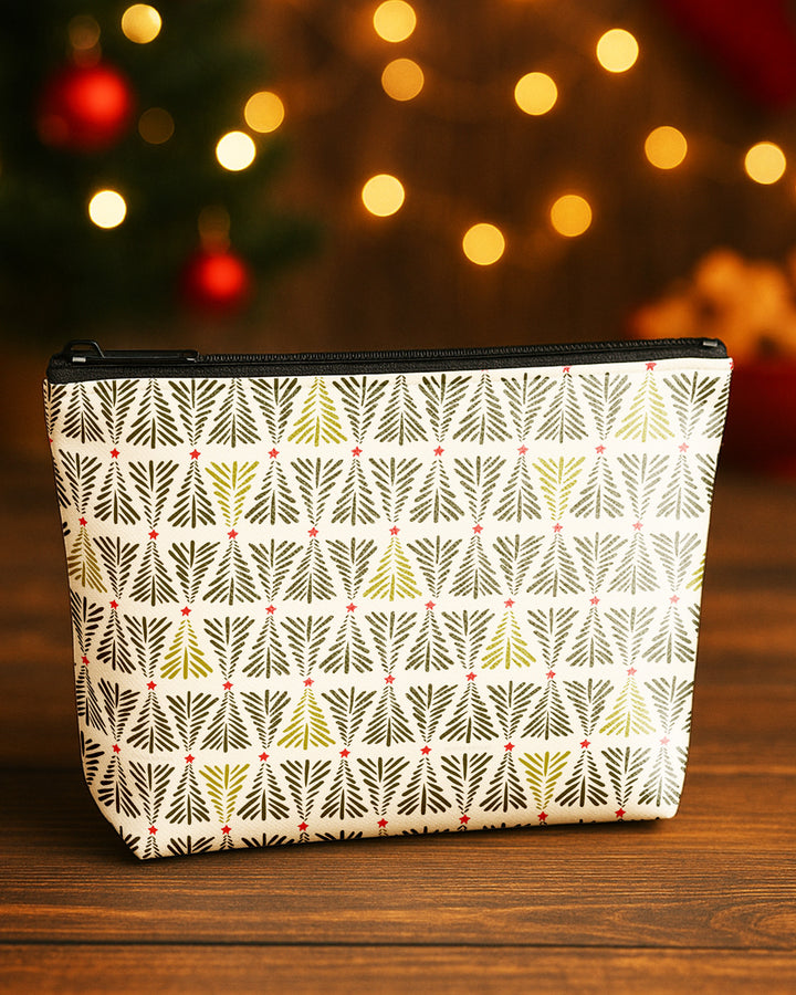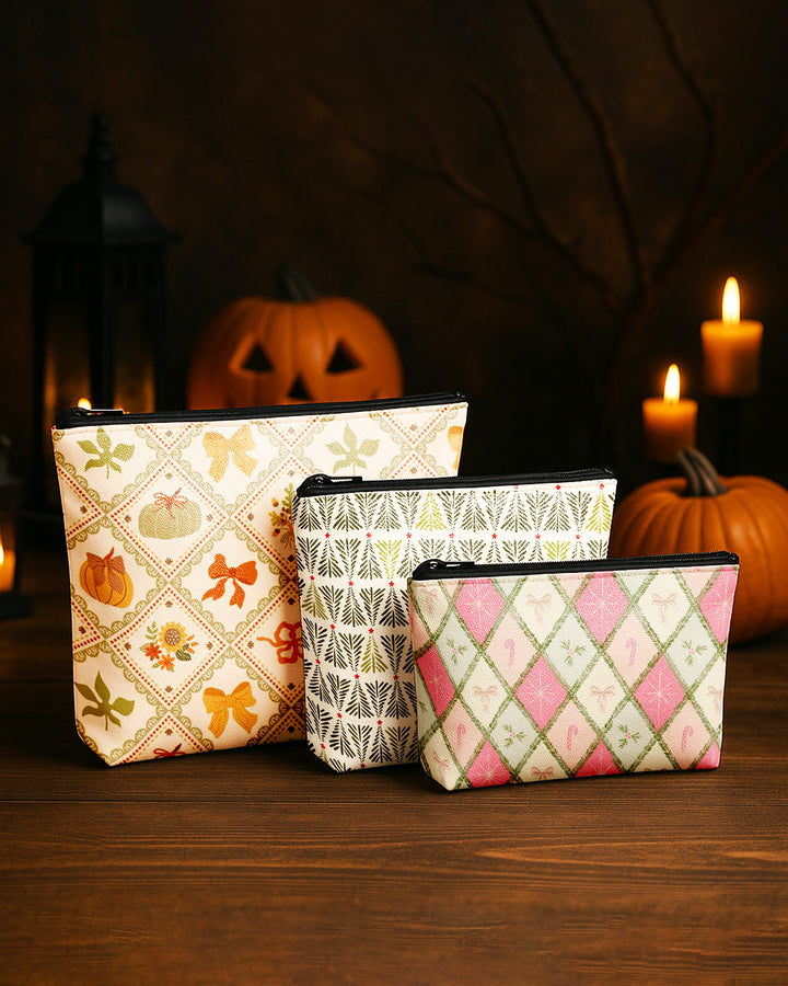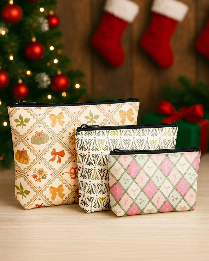 Set of 3 - Essential Zipper Pouch for Makeup Bag Xmas Tree Pattern - Bow Pumpkin Pattern - Candy Bow Pattern Cute Christmas GPO0181