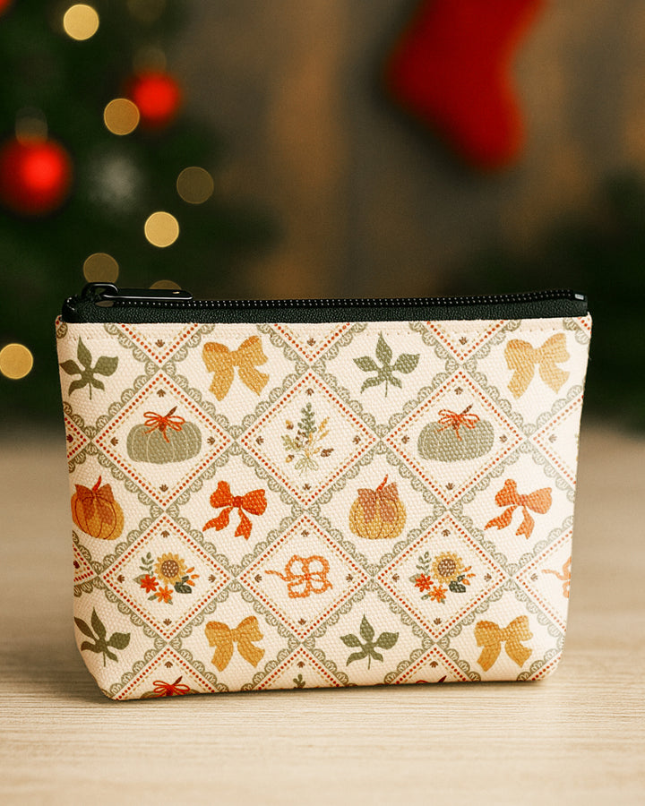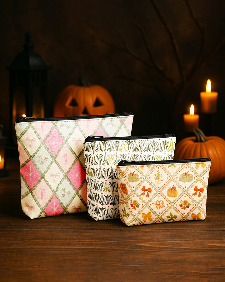 Set of 3 - Essential Zipper Pouch for Makeup Bag Xmas Tree Pattern - Candy Bow Pattern - Bowl Pumpkin Pattern Cute Christmas GPO0182