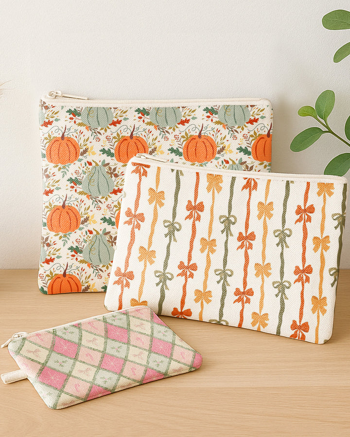 Set of 3 - Flat Zipper Pouch for Makeuppupmkin pattern - Colorful bow pattern - Candy Bow pattern Cute Christmas GZP011