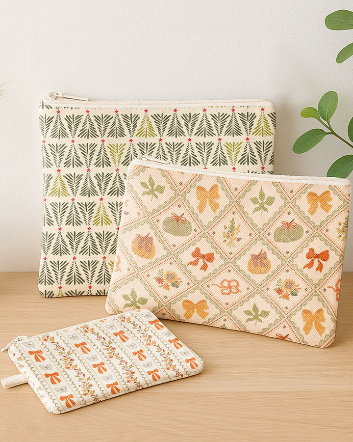 Set of 3 - Flat Zipper Pouch for Makeup Xmas Tree Pattern - Bow Pumpkin Pattern - Bow Pattern Cute Christmas GZP016