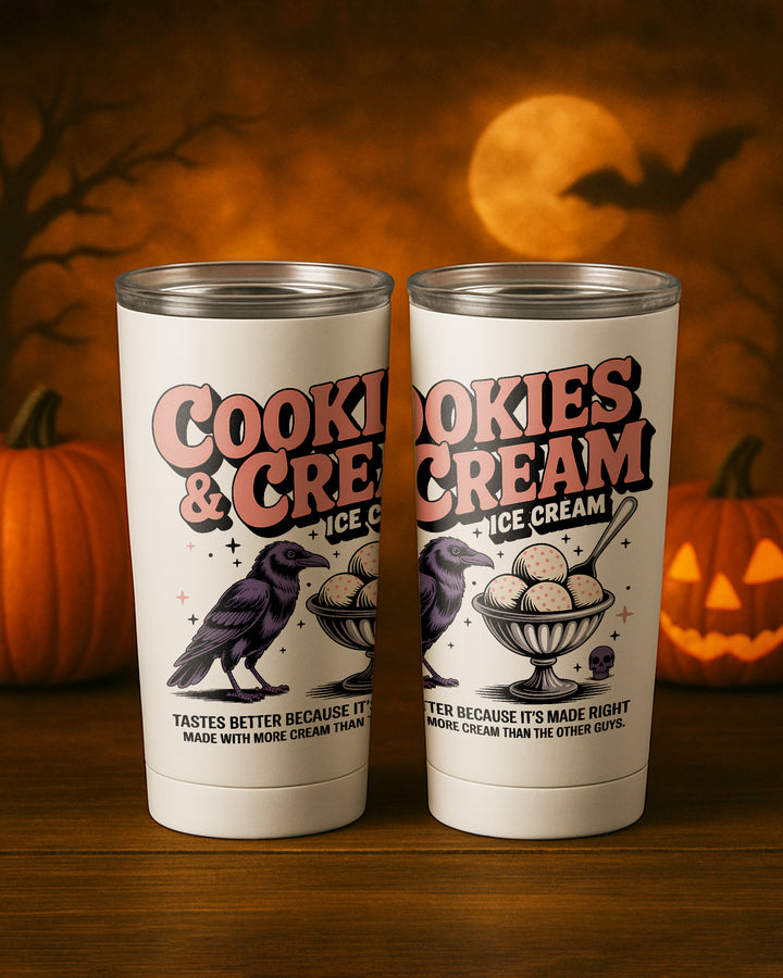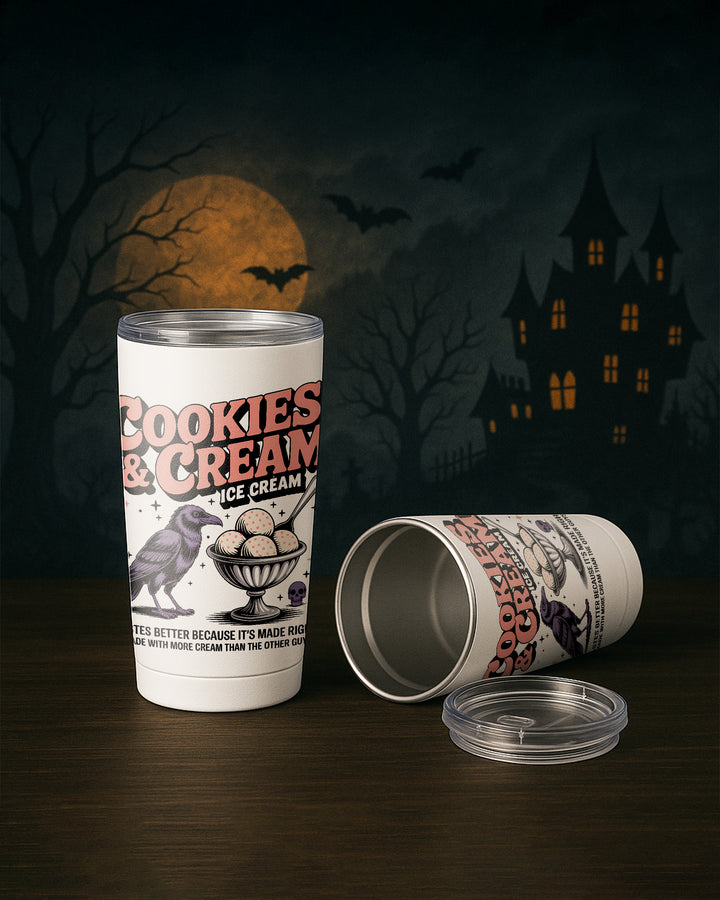 Stainless Tumbler Cookies Cream Ice Cream Raven Skull Cute Halloween GTB0132