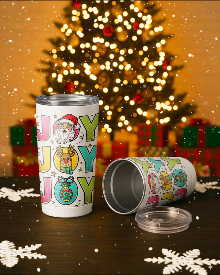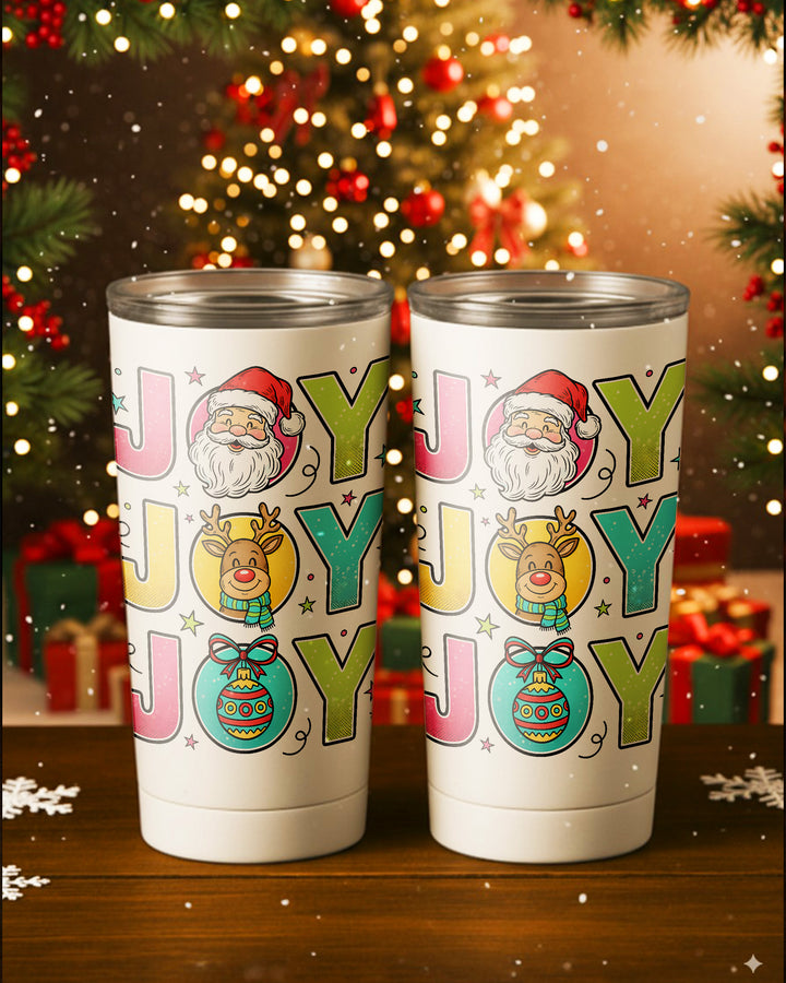 Stainless Tumbler Joy Santa Reindeer Ornament GTB0188