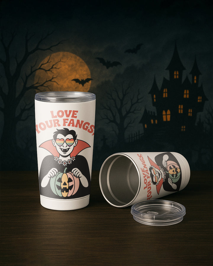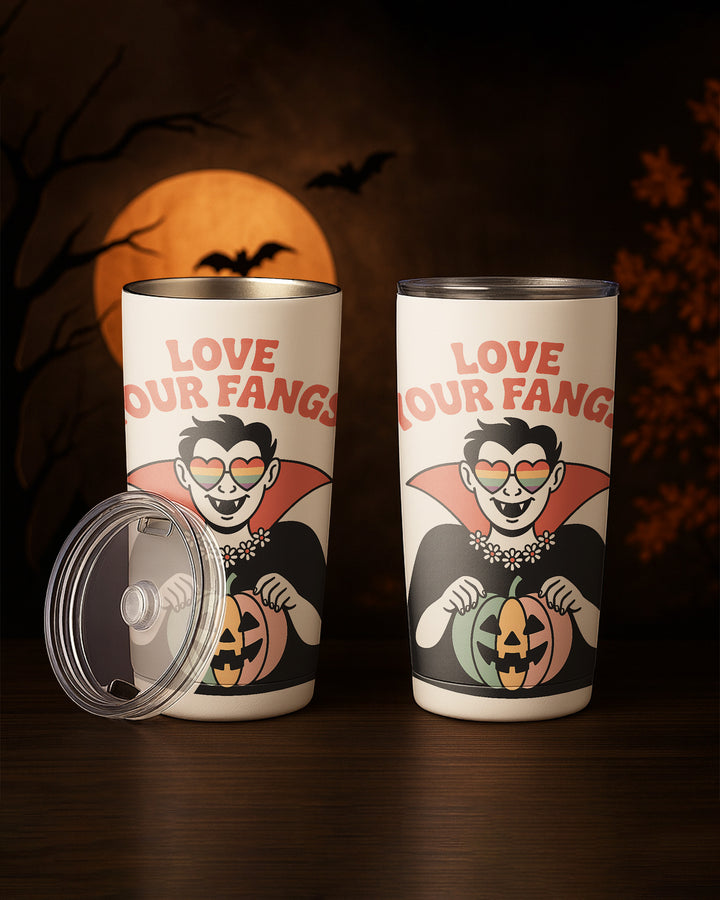 Stainless Tumbler Love Your Fangs Pumpkin Vampire Cute Halloween GTB061