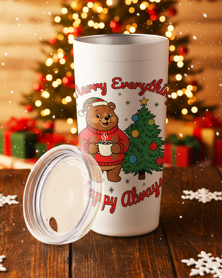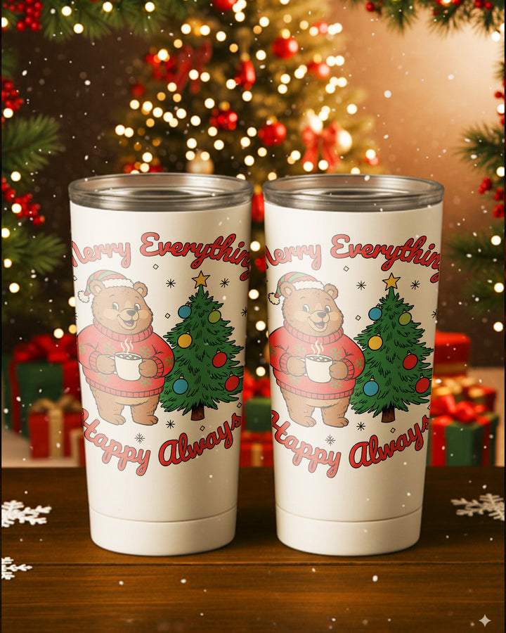 Stainless Tumbler Merry Everything Happy Always Bear Christmas Tree Cute Christmas GTB0155