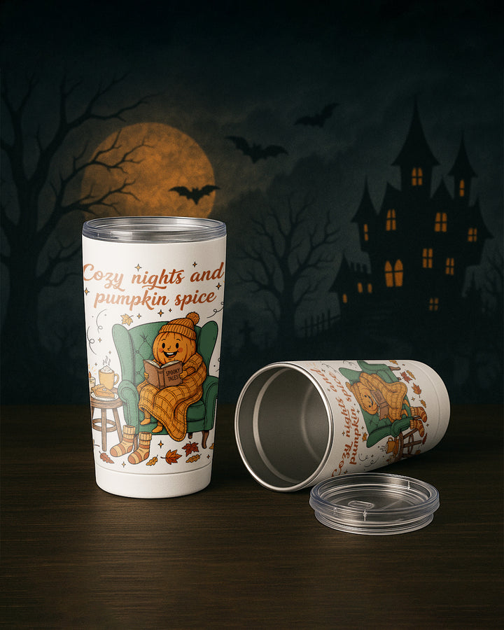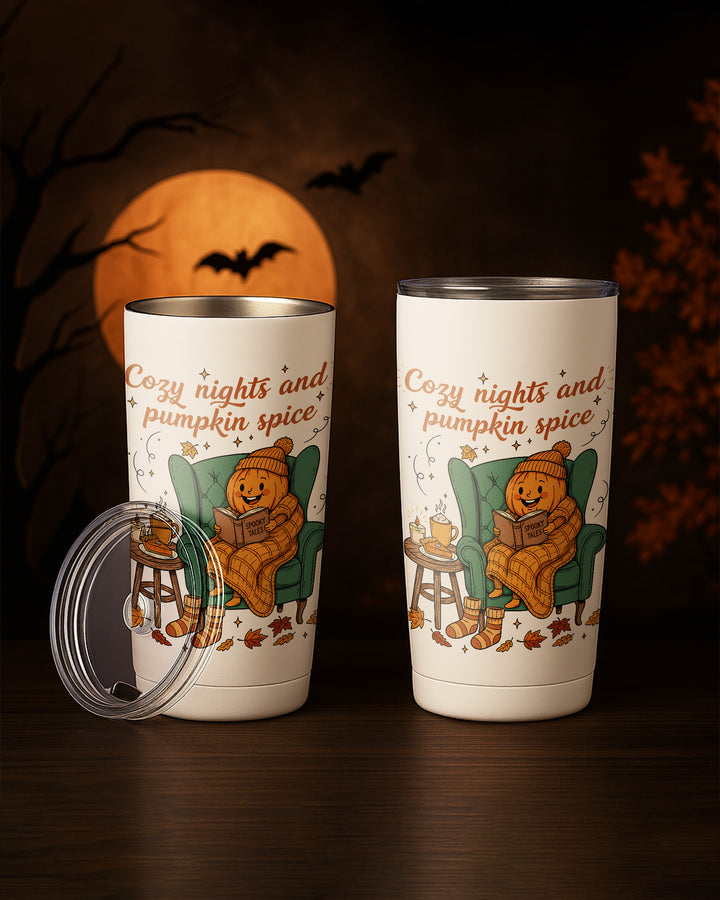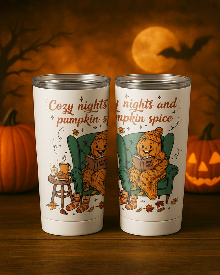 Stainless Tumbler Pumpkin Reading Cozy Night Cute Halloween GTB0170
