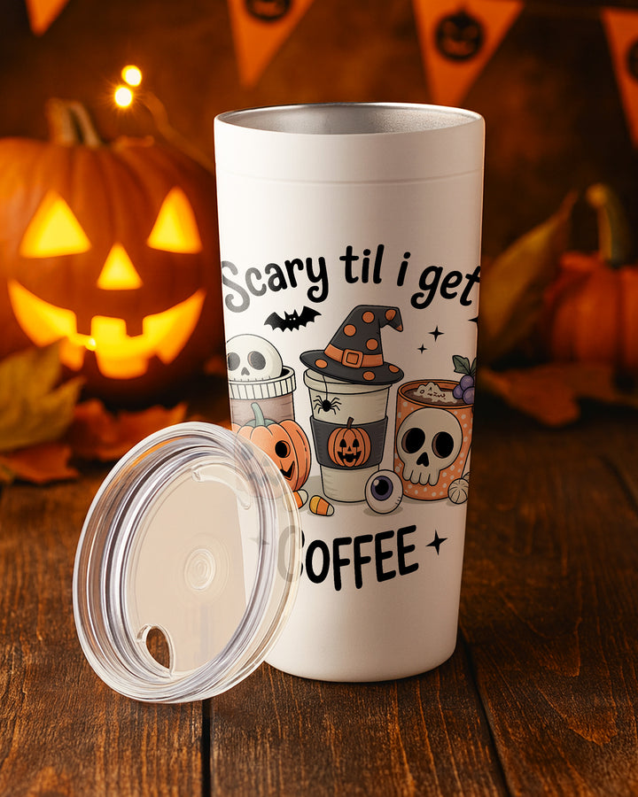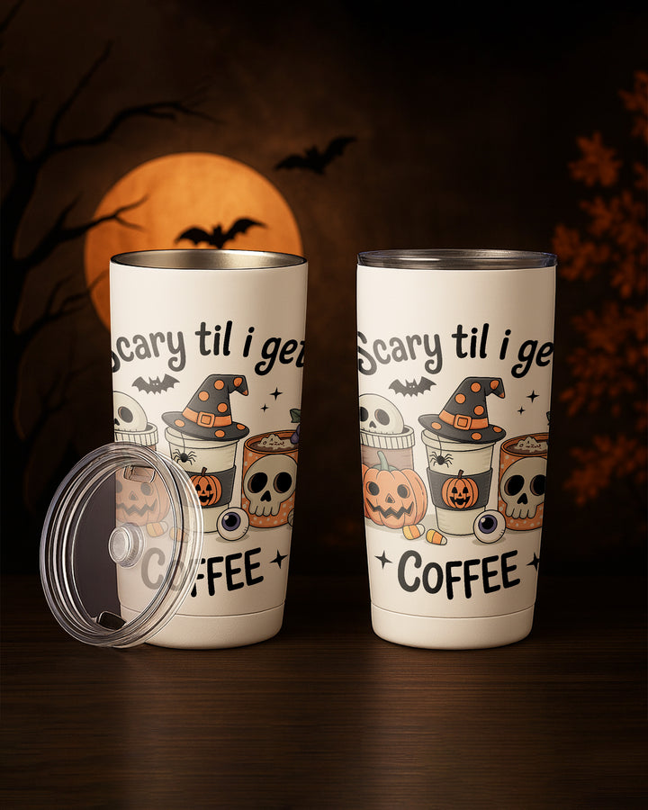 Stainless Tumbler Scary Til I Get Coffee Skull Skeleton Pumpkin Cute Halloween GTB080
