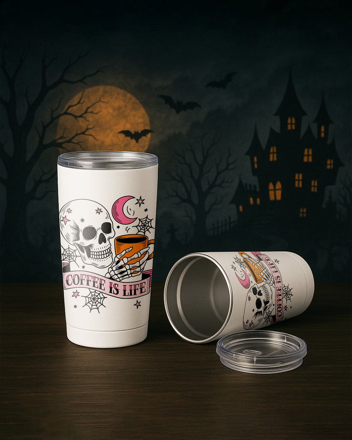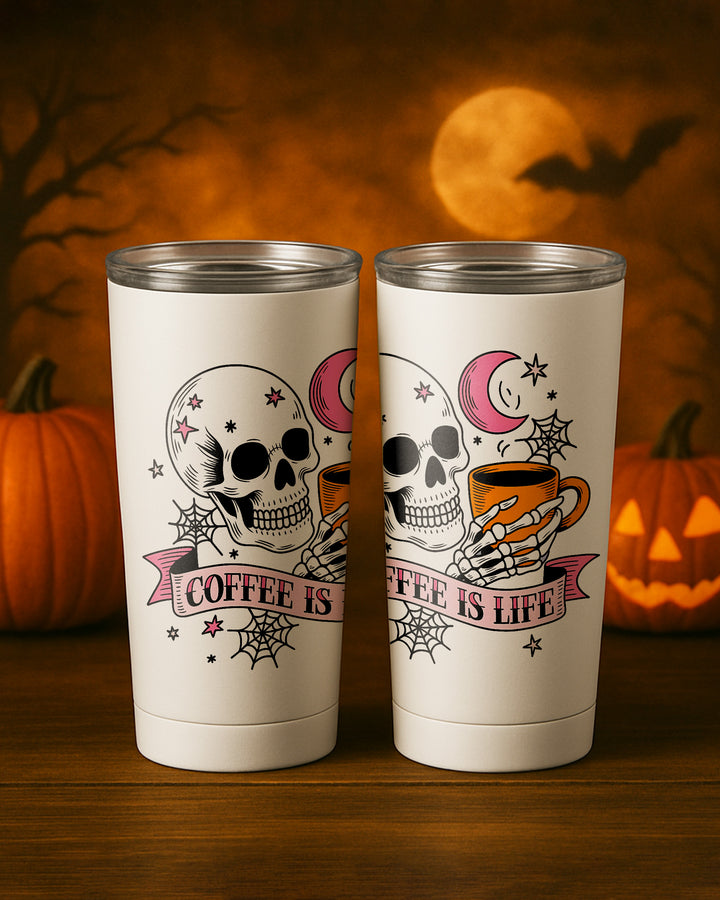 Stainless Tumbler Skull Drinking Coffee Coffee Is Life Cute Halloween GTB0146