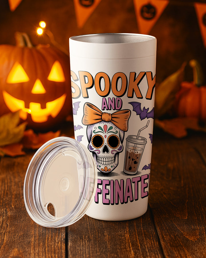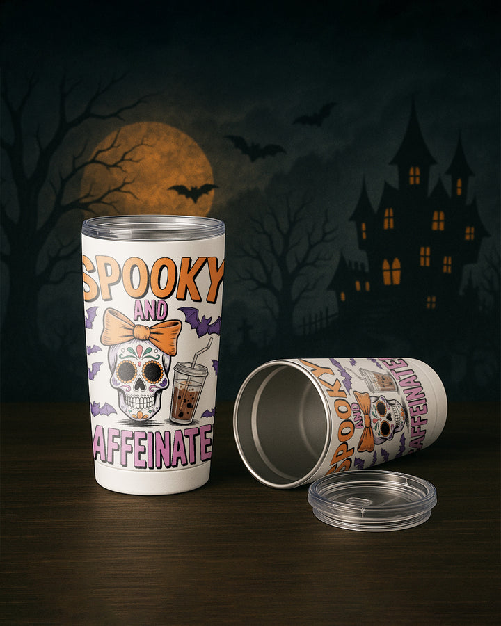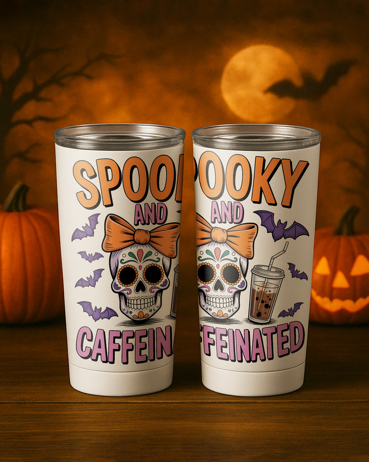 Stainless Tumbler Spooky and Cafeined Skeleton Cute Halloween GTB082