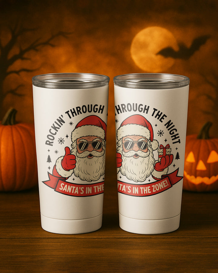 Stainless Tumbler Tis Rockin’ Through The Night Santan'S In The Zone GTB0235