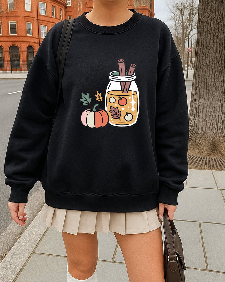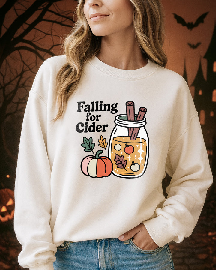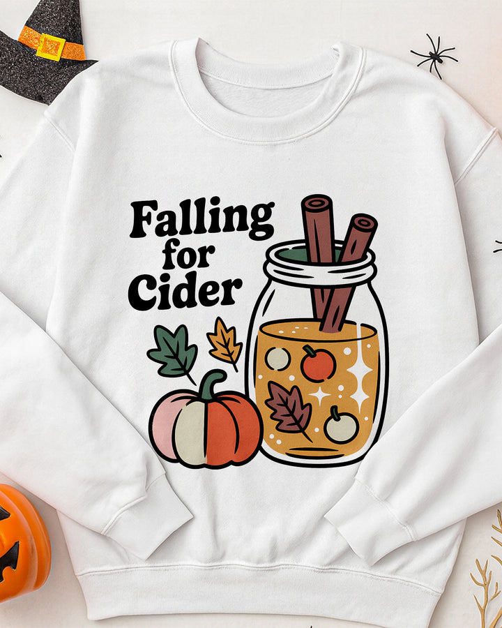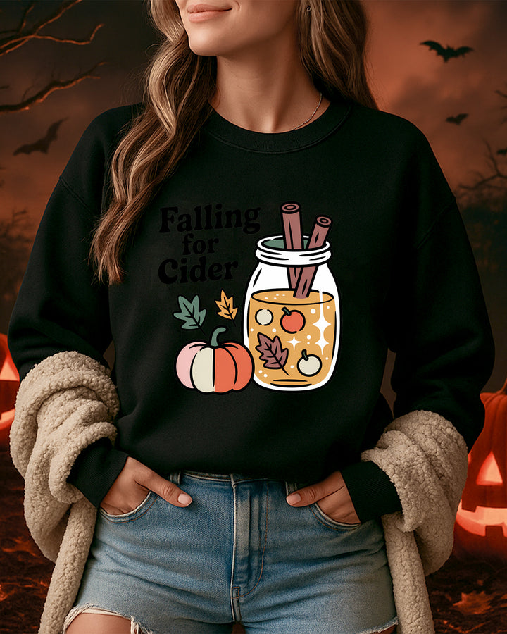 Sweater Falling For Cider Drinking Pumpkin Cute Halloween GSW038