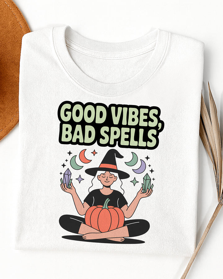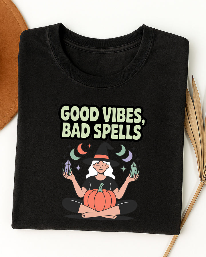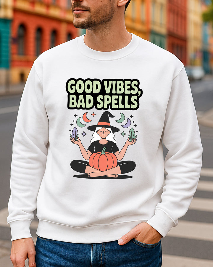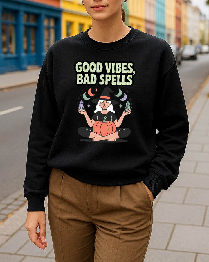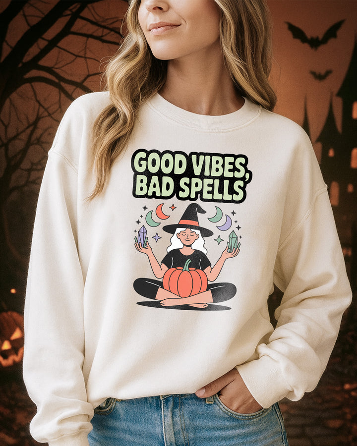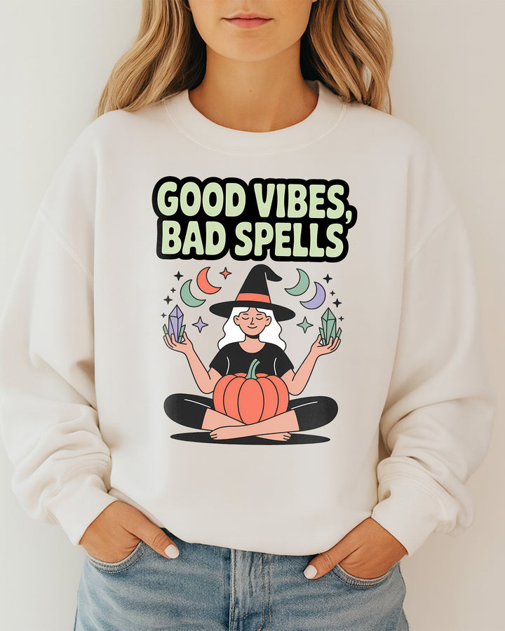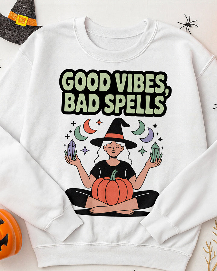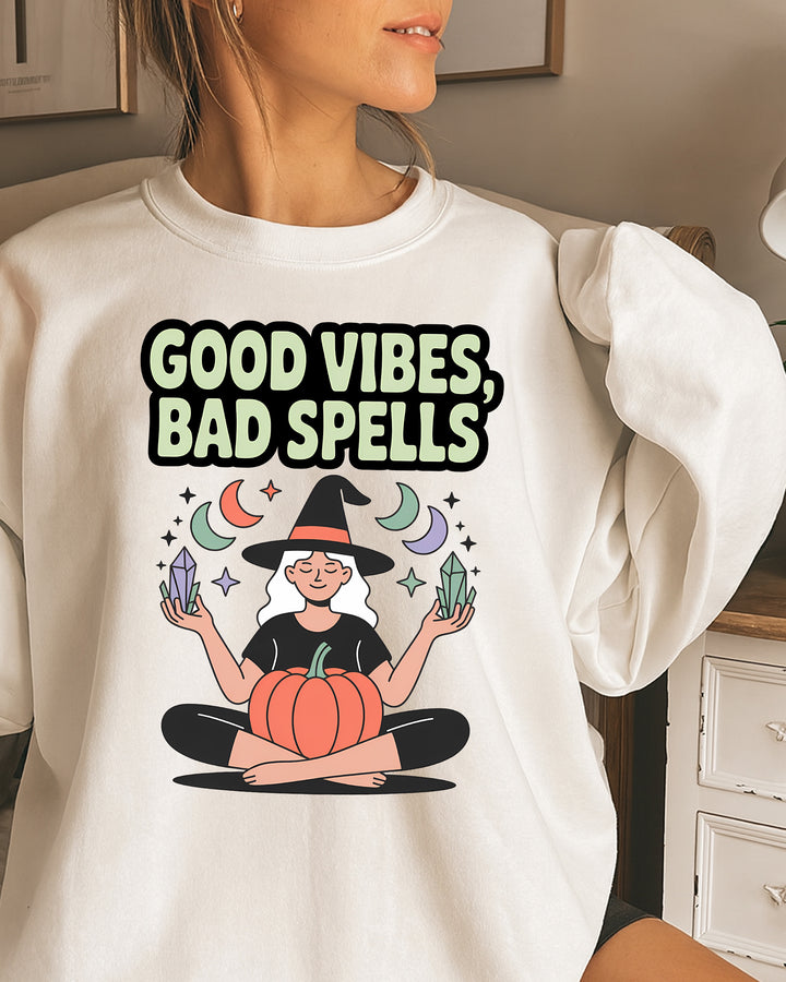 Sweater Good Vibes Bad Spells Boho Witch Cute Halloween 03 GSW052