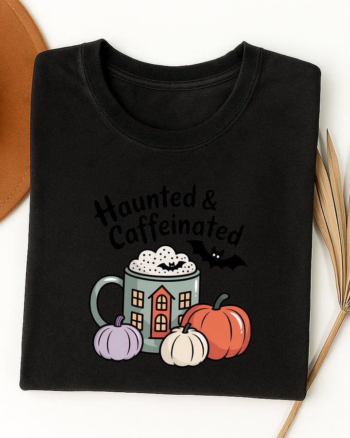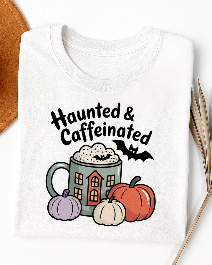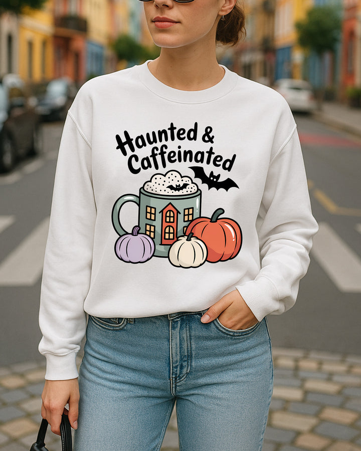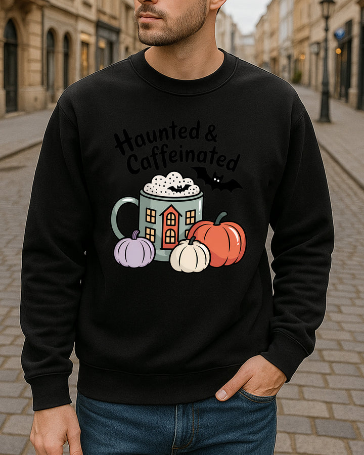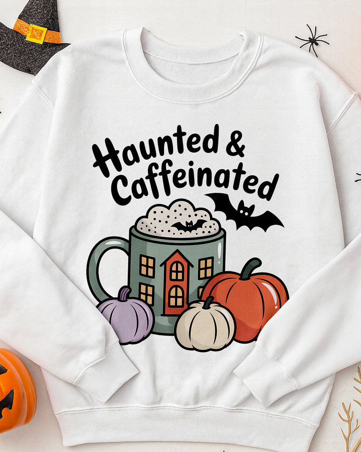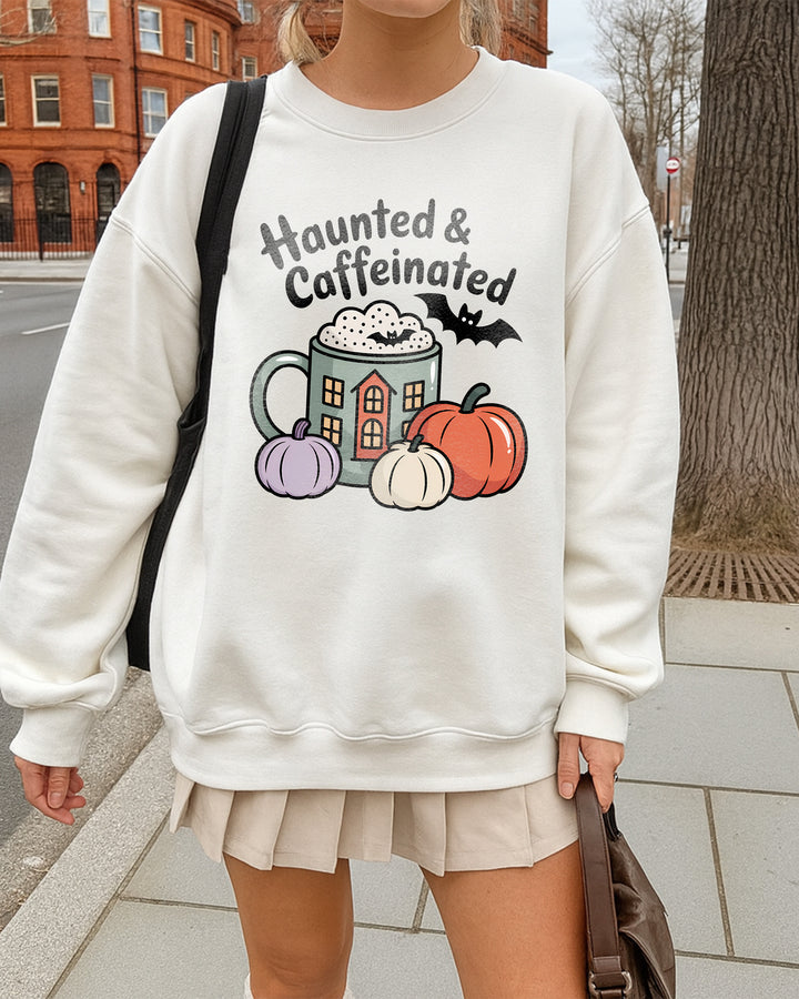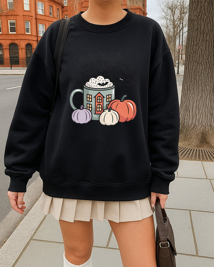 Sweater Haunted & Caffeinated Coffee Cream Cup Bat Cute Halloween GSW058