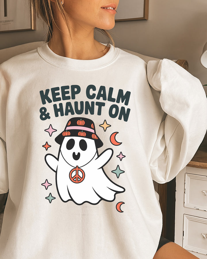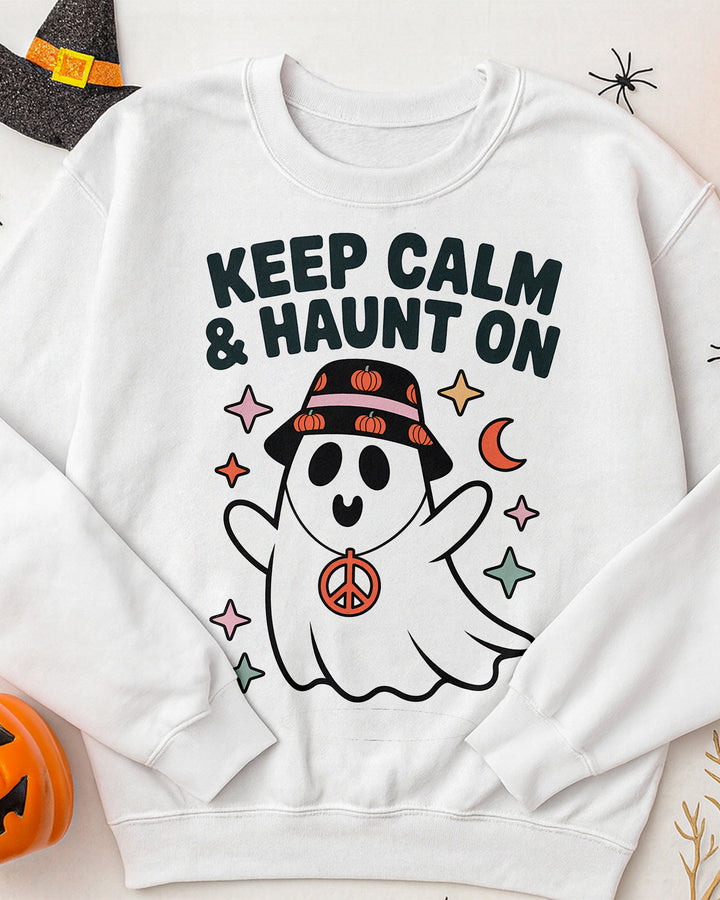 Sweater Keep Calm & Haunt On Ghost Peace Cute Halloween GSW065