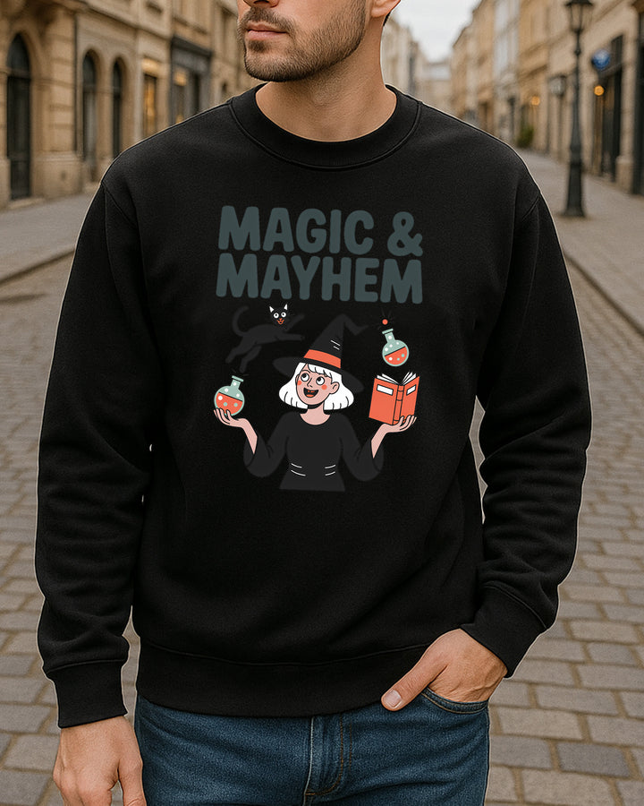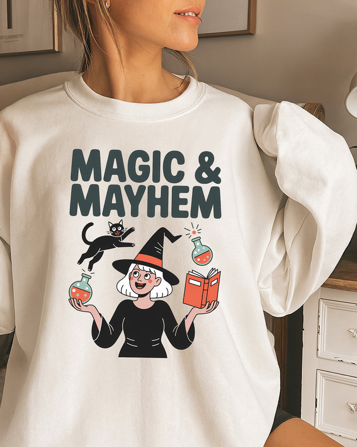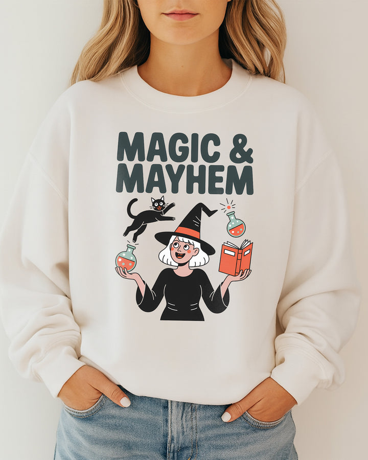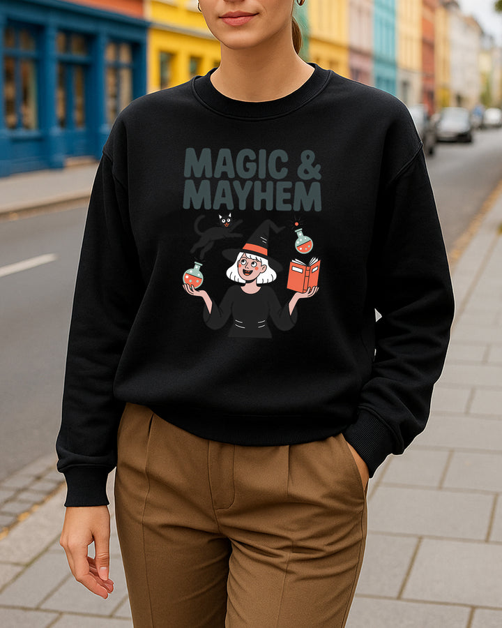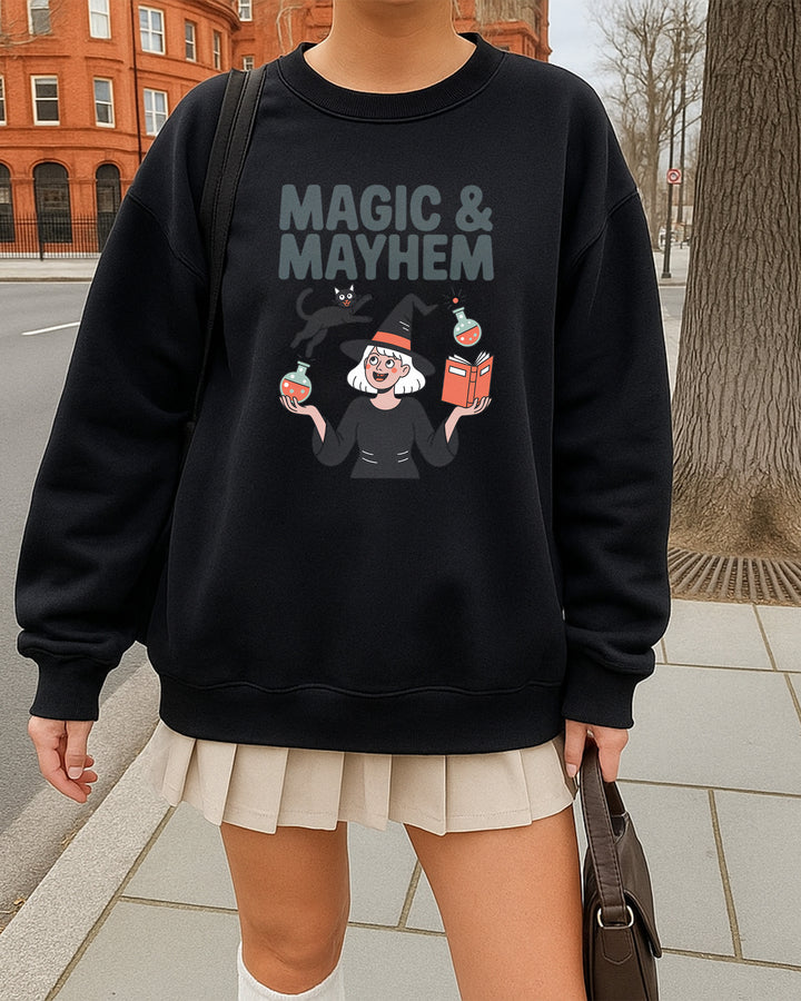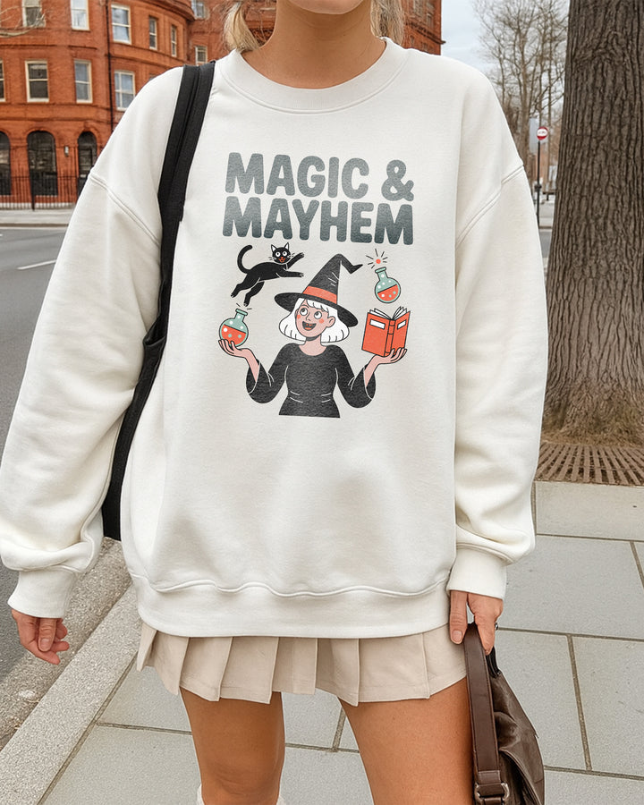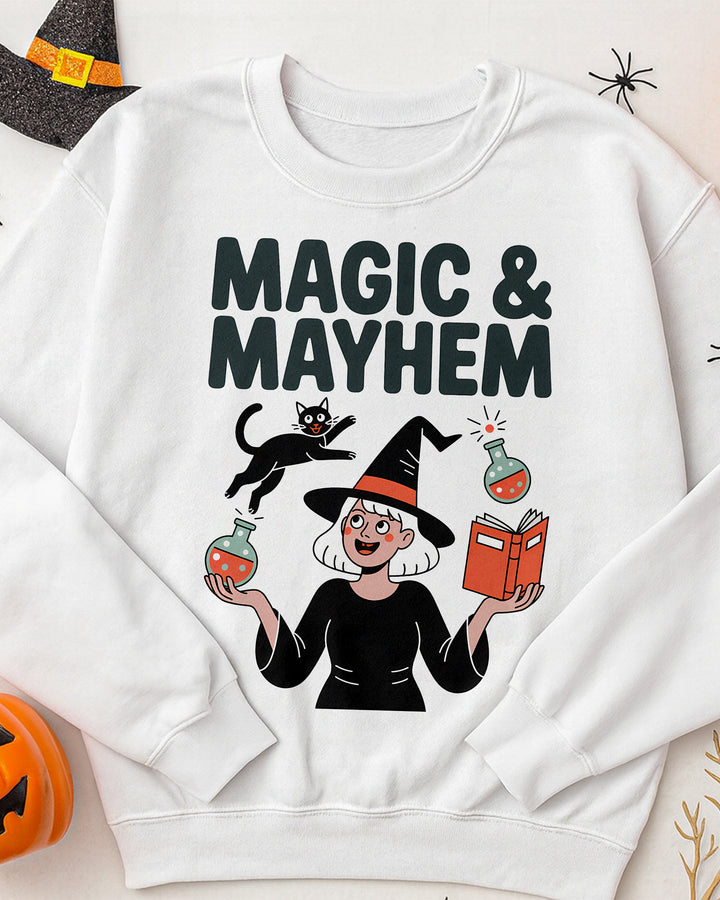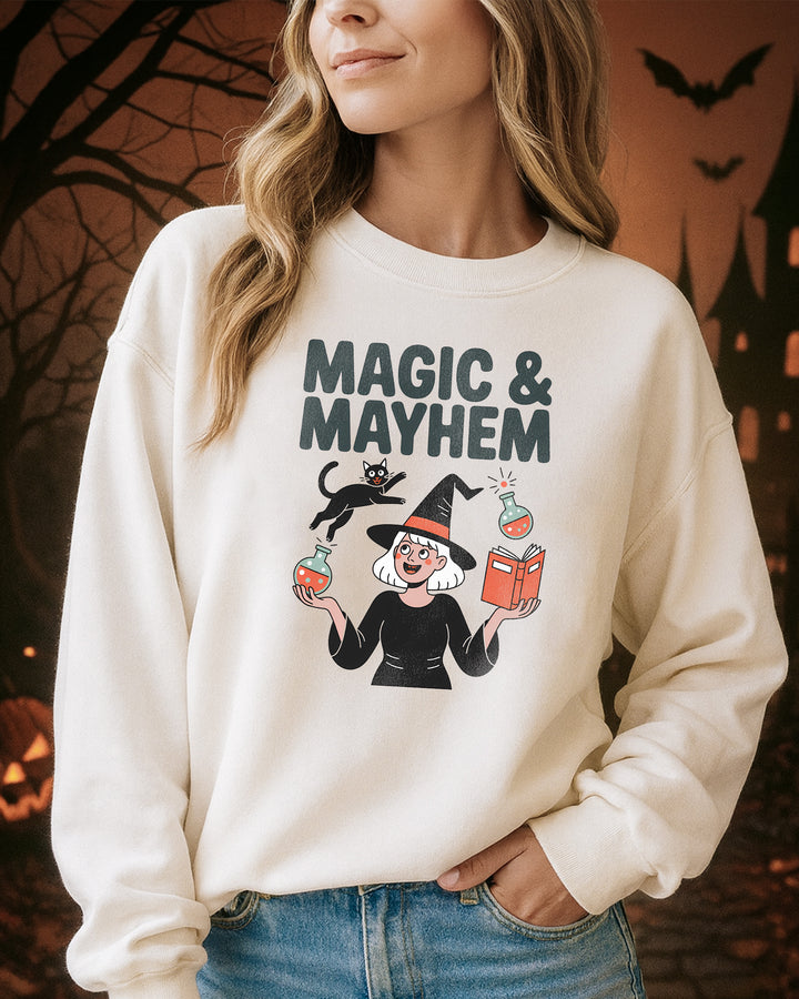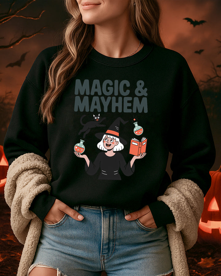 Sweater Magic & Mayhem Witch and Black Cat Physical Chemistry Cute Halloween GSW071
