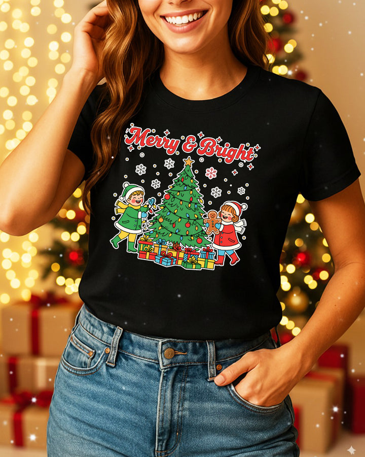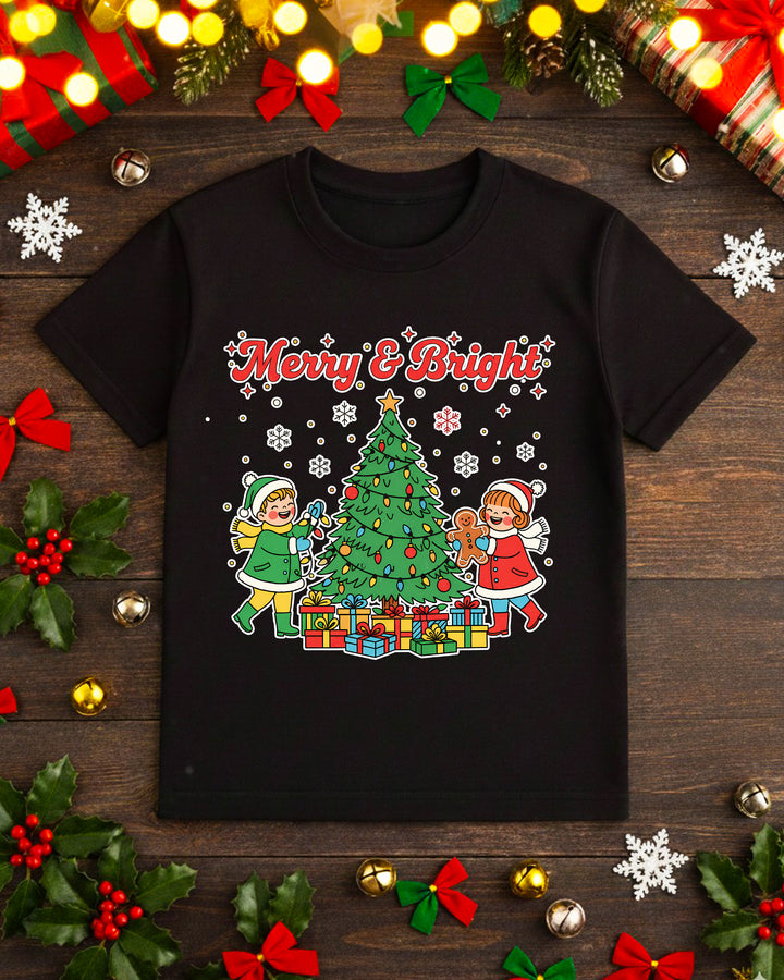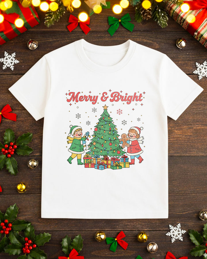 T-shirt Merry And Bright Christmas Kids Tree Cute Christmas GTS03