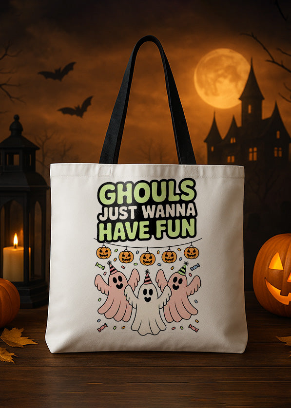 Canvas Totebag Ghouls Just Wanna Have Funs Ghost Cute Halloween 02 GTT0126