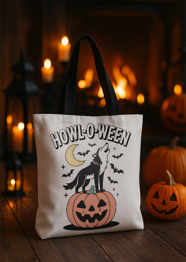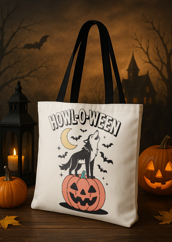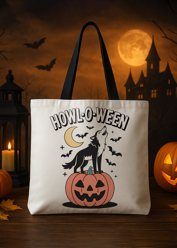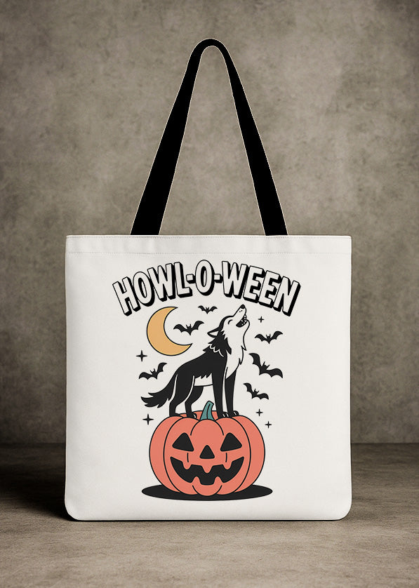 Canvas Totebag Howl O Ween Wolf Pumpkin in Night Moon Cute Halloween GTT0137