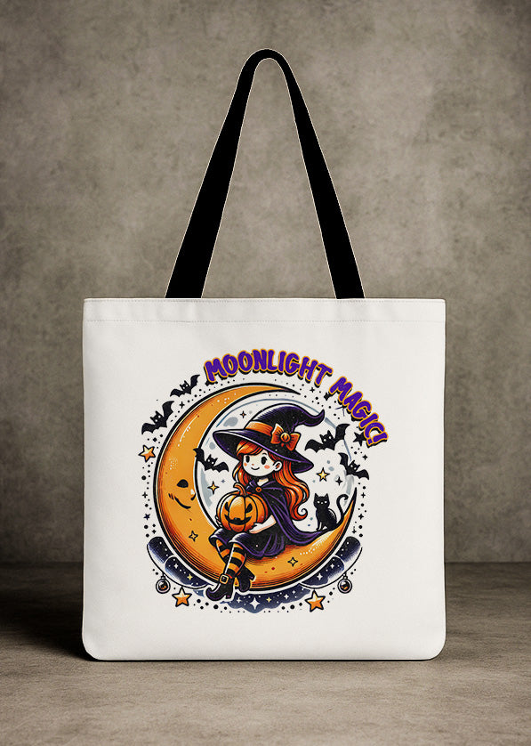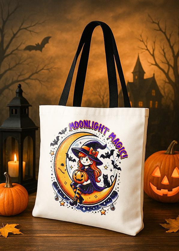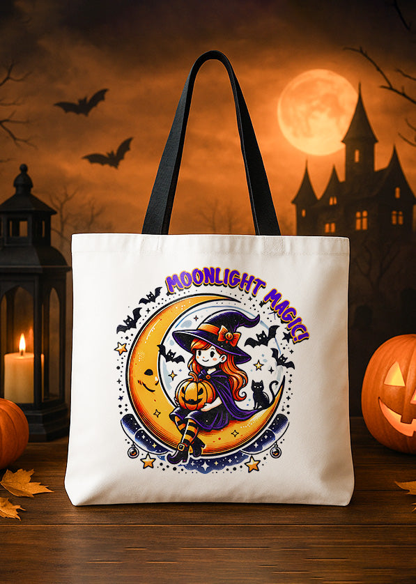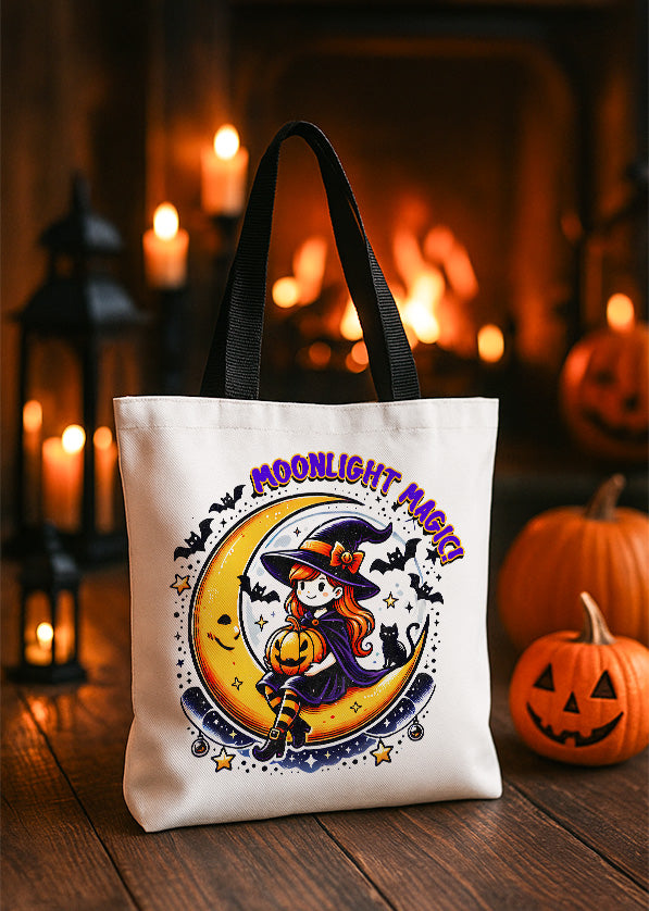 Canvas Totebag Moonlight Magic Witch and Pumpkin Cute Halloween GTT0149