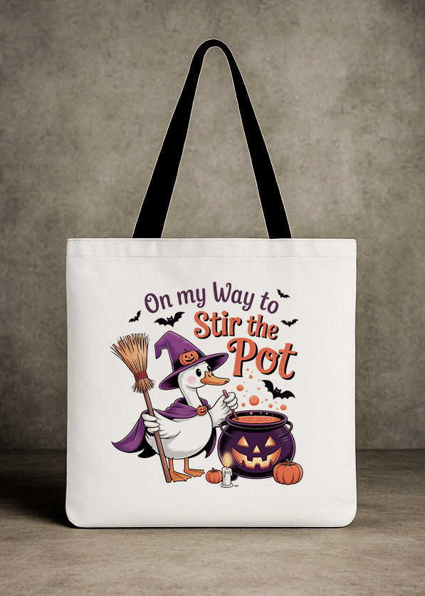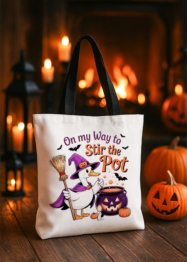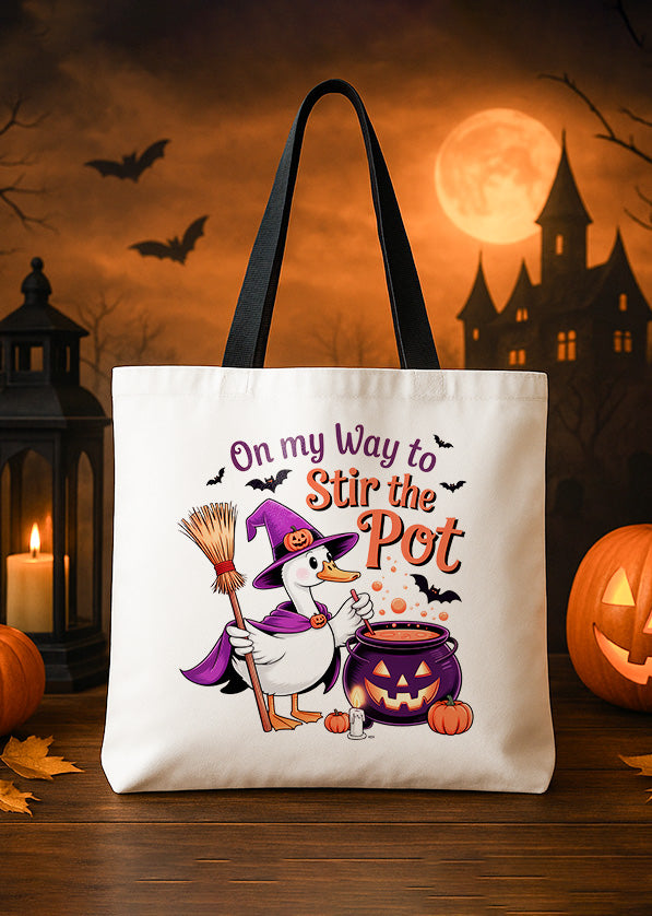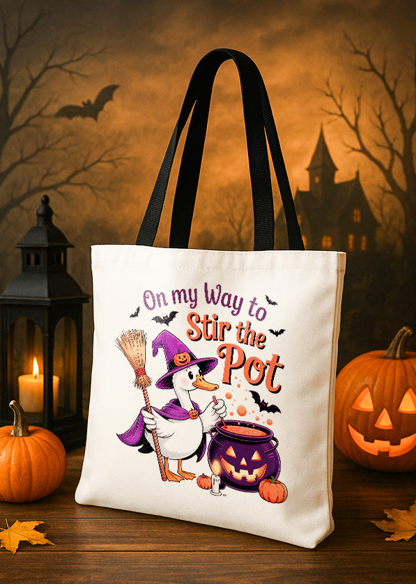 Canvas Totebag On My Way To Stir The Pot Goose Cute Halloween GTT0153