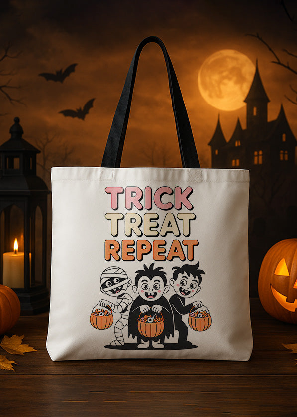 Canvas Totebag Trick Treat Repeat 02 Cute Halloween GTT0197